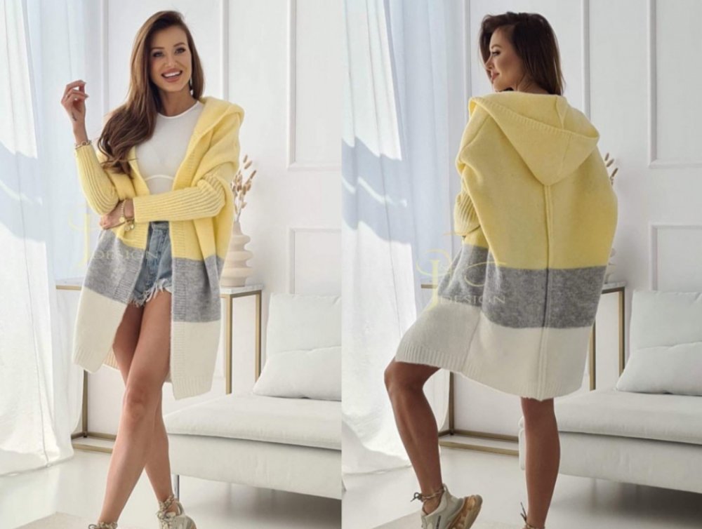 Dámský luxusní pletený pruhovaný kabát,cardigan s kapucí LINDA -nejmódnější barevné kombinace.Používáme na místo kabátu či bund.Staňte se ženou, kterou nelze přehlédnout. Budete vypadat naprosto dokonale. Svetr který si zamilujete - příjemný k nošení.Teplý,volný výjimečny. Zahřeje, vypadá velice krásně, a Vy v něm budete krásná! Svetřík který nesmí chybět v žádném šatníku žen. Vyrobený z příjemné a pěkné pleteniny. Fantastická kvalita měkký teplý materiál.Kvalitní úplet.Poutavé detaily dělají tento svetr skutečně luxusním! V trendy oversized stylu.Skvěle využijete v chladném období.Původní kombinace barev oživí jakoukoli stylizaci. Záruka stylu a nejvyšší kvality. Módní svetr je ideální pro ženy, které oceňují styl a komfort.