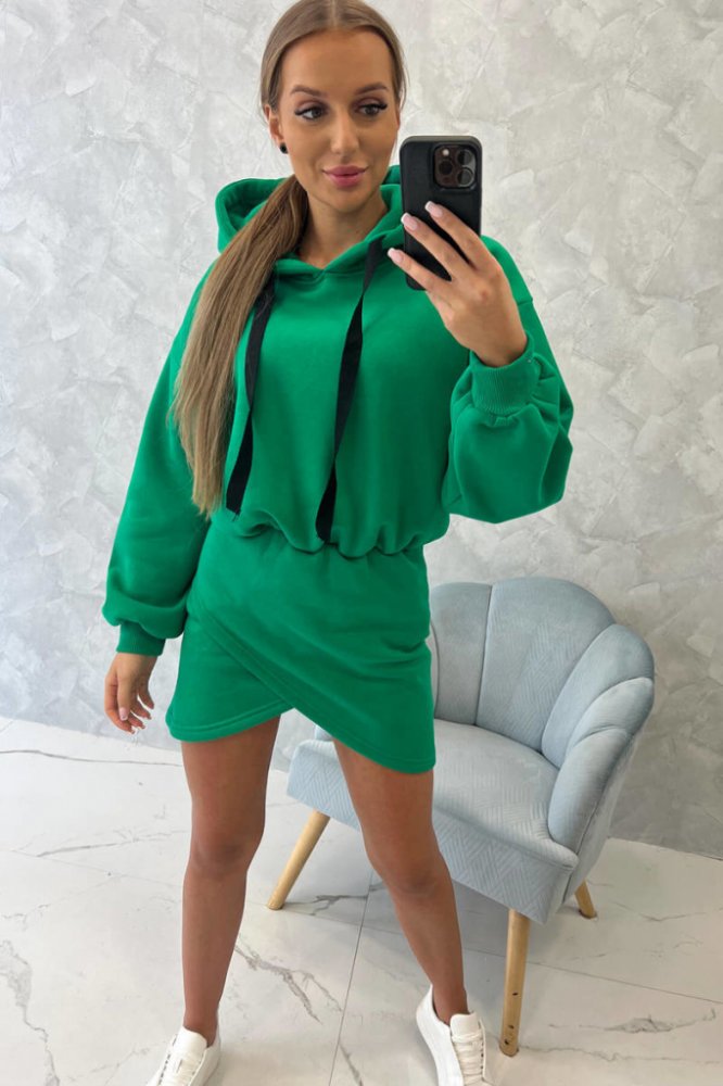 Fashionweek zateplené mini teplákové šaty K9432 zelená