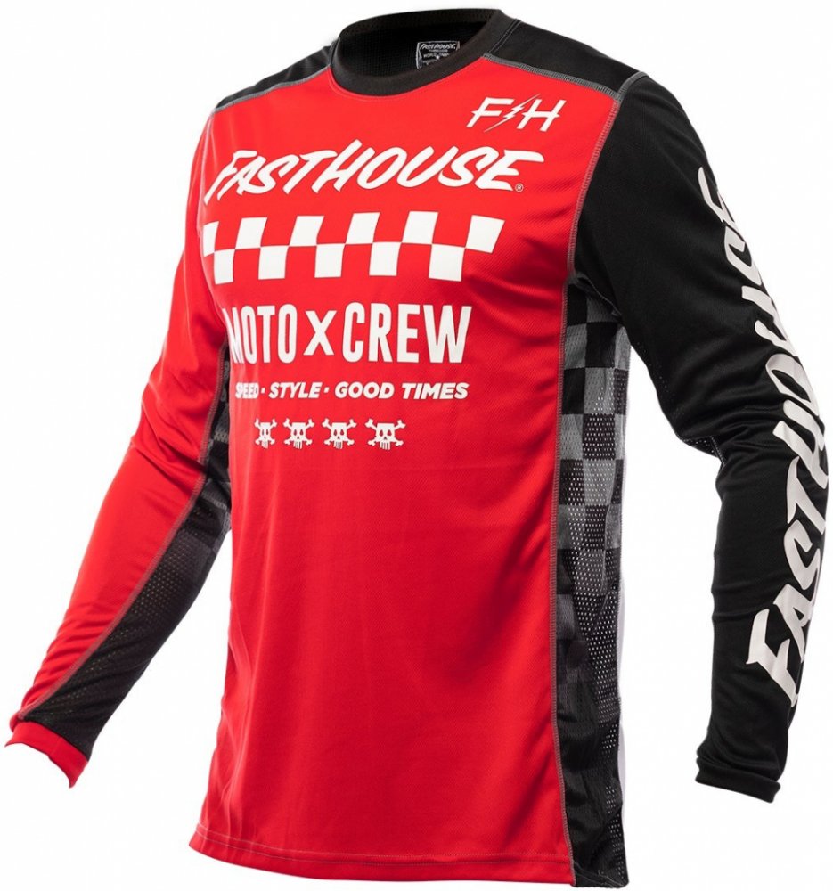 Motokrosový dres Fasthouse Grindhouse Alpha Jersey je určený pro jízdu na motokrosových, endurových či trialových motocyklech, případně lze použít i pro MTB a downhill. Velikost zvolte podle obvodu hrudníku jezdce kolem navléknutých chráničů hrudi, zad a podobně. Klíčové vlastnosti zahrnují: hloubkově barvený 100% polyester pro dlouhodobou odolnost barev i při zátěži a otěru, vlhkost odvádějící materiály, síťované látkové panely na bocích a zevnitř rukávů pro ještě lepší prodyšnost, žebrovaný okraj kolem krku a zápěstí, rukáv s možností zahnutí v dolní části u zápěstí, potisk sítotiskem, pevné overlock švy, prodloužená zadní část dresu v jeho dolní části, atletický střih, středně přiléhavý. Dresy, kalhoty i rukavice z různých sérií mezi sebou můžete libovolně kombinovat do jednoho kompletu, pouze barevnost by měla být sladěna.