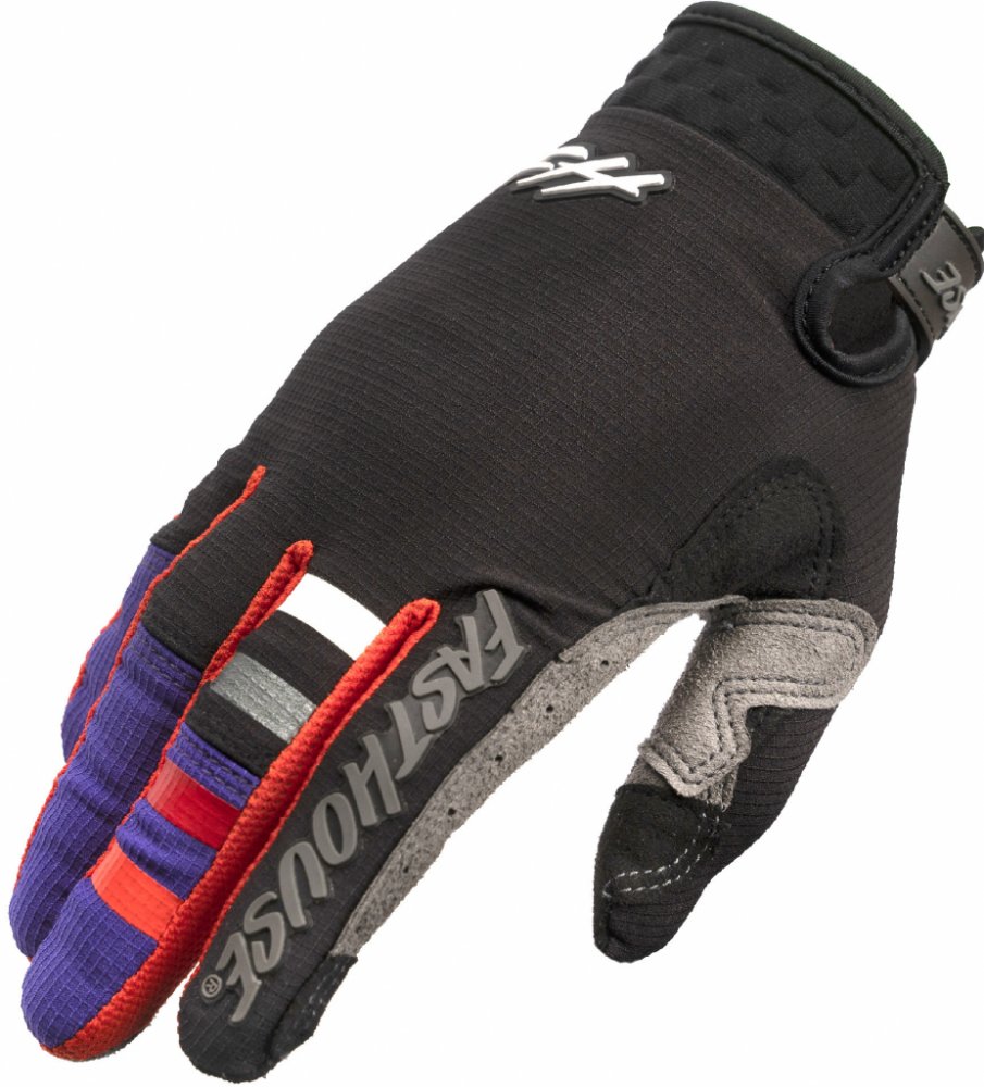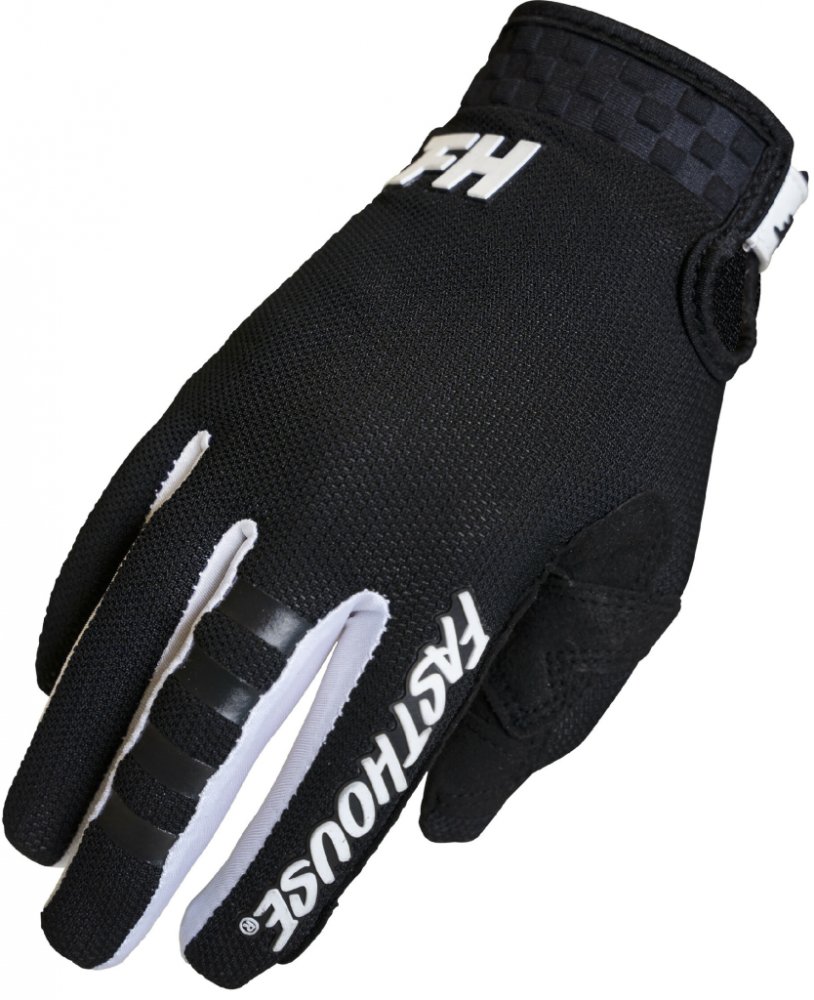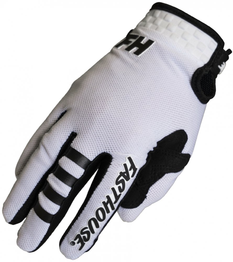 Rukavice Fasthouse Youth A/C Elrod Air Glove jsou propracované, velmi vzdušné, stretch, z vícerých materiálových panelů pro komfort, prodyšnost, fit a grip. Ideální varianta pro závody v letním období. Na bříškách palce a ukazováčku je použitý materiál v souladu s touch tech, pro snadný dotyk telefonu či tabletu, bez potřeby sundávat rukavice. Panely z materiálu Clarino jsou umístěné na dlaních a palci, na dlani je panel perforovaný. Kolem zápěstí je neoprenový nízkoprofilový panel a pásek na zip. Hlavní hřbetový panel na ruce je ze síťovaného stretch matreriálu, rozpínatelného se do 4 stran. Silikonové plošky v šachovnicovém vzoru na ukazováčku a prostředníčku pro lepší grip páček spojky a brzdy. Rukavice obsahují vystouplá loga Fasthouse (vyrobená pomocí TPR technologie) na ukazováčku, hřbetu ruky, prstu a zapínacím pásku na suchý zip. Rukavice jsou vhodné pro všechny off-road disciplíny, například motokros, enduro, MTB, down hill, quad.