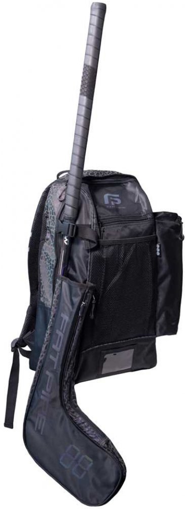 Batoh má jednu velkou kapsu o objemu 30 litrů. Postraní zapínací kapsa na láhev nebo florbalové míčky. Na horní straně batohu je menší zapínací kapsa na drobnosti. Nejdůležitější soušástí je pak postranní kapsa na florbalovou hůl. Nad kapsou se pak ještě ukrývá malý pytlík na ochranu omotávky.