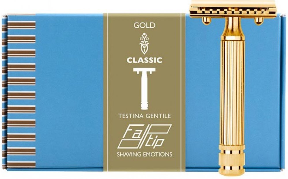 Fatip Grande Testina Gentile Gold je skvěle vyvážený trojdílný holicí strojek s plnou lištou. Strojek je robustní s pozlaceným mosazným jádrem. Fatip je známý především jako výrobce velmi agresivních strojků s otevřenou lištou, což se ale v roce 2015 změnilo uvedením nové hlavice 'Testina Gentile', vyvinuté pro uživatele, kteří preferují méně agresivní styl holení.