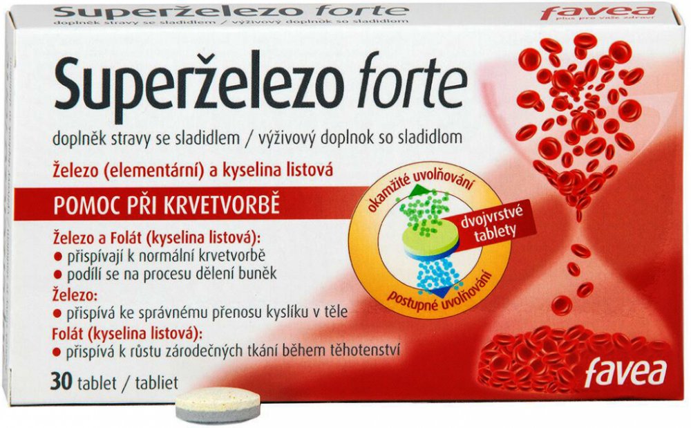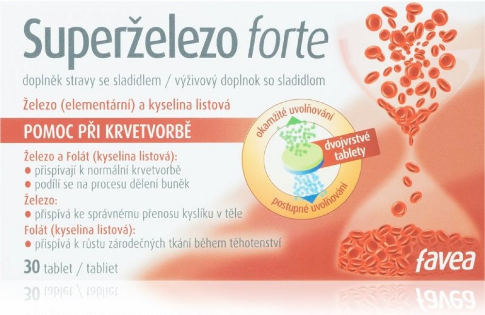 FAVEA 30 tbl tablety 50 ml krev pro ženy 15.0 g Favea pro dospělé perorální od 3 let bez příchutě Česká republika železo kosti a klouby 30 20.0 mg Večer 1 za den Suché místo + pokojová teplota, Chránit před světlem/sluncem, Mimo do… s vitamínem B9 (kyselina listová)