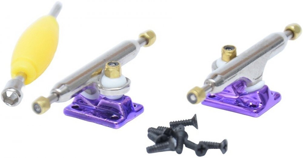1x pár trucků (2 trucky) stříbrný hanger a fialový baseplate