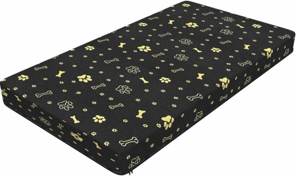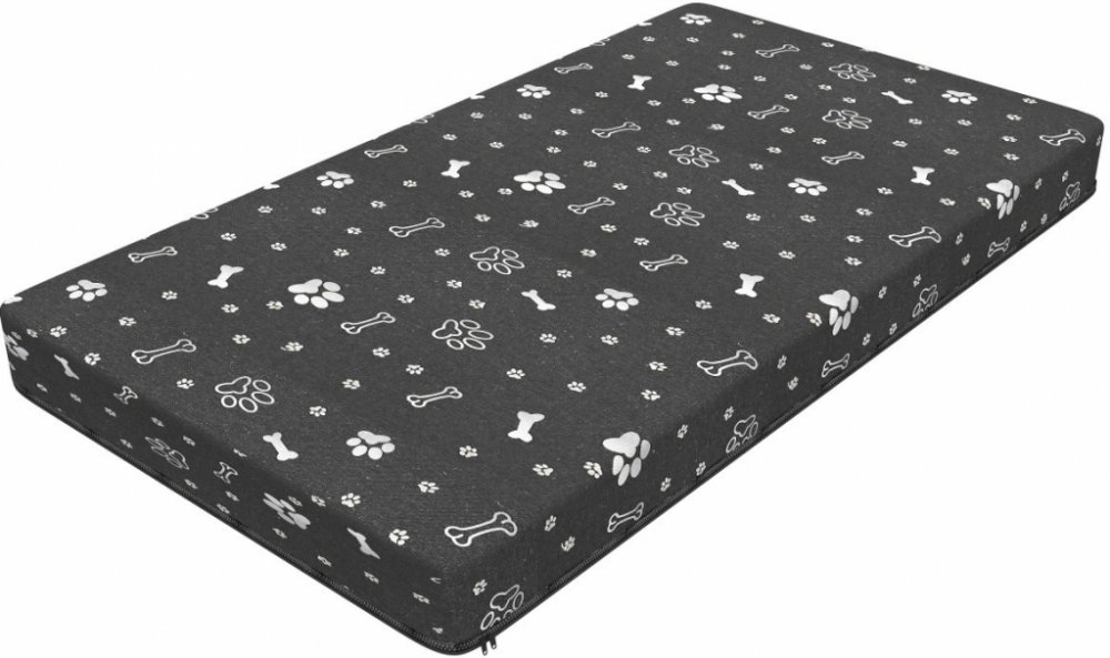 Matrace je zdobená veselým vzorem, který kombinuje různé motivy, jako jsou tlapky a kosti. Tento design přidává matraci hravý a příjemný vzhled, což je ideální pro milovníky psů, kteří chtějí svému mazlíčkovi dopřát nejen pohodlí, ale i stylové místo k odpočinku.