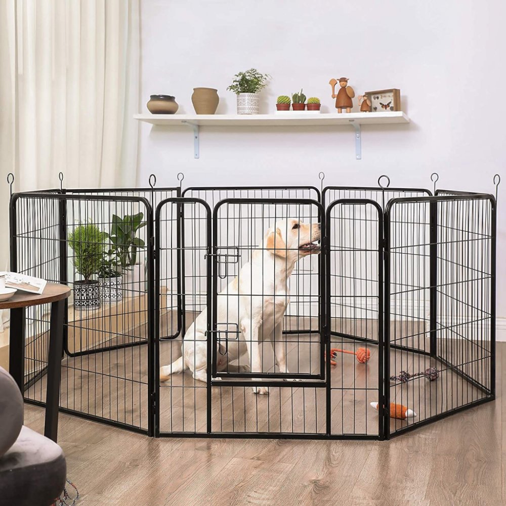 Ohrádka pro psa Sognmics nabídne vašemu čtyřnohému parťákovi bezpečné místo. Je optimální pro střední plemena. Zvoleným materiálem je kov. Tato ohrádka vyniká tím, že ji můžete kdykoliv jednoduše složit a uskladnit, když ji zrovna nepoužíváte. Konstrukce této ohrádky je navržena tak, aby odolala i nepřízni počasí, což umožňuje její využití jak uvnitř, tak venku. Aby zvířátko neuteklo ven, můžete d...