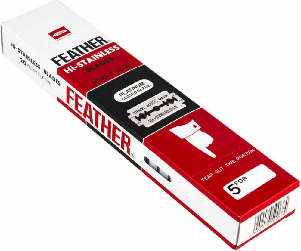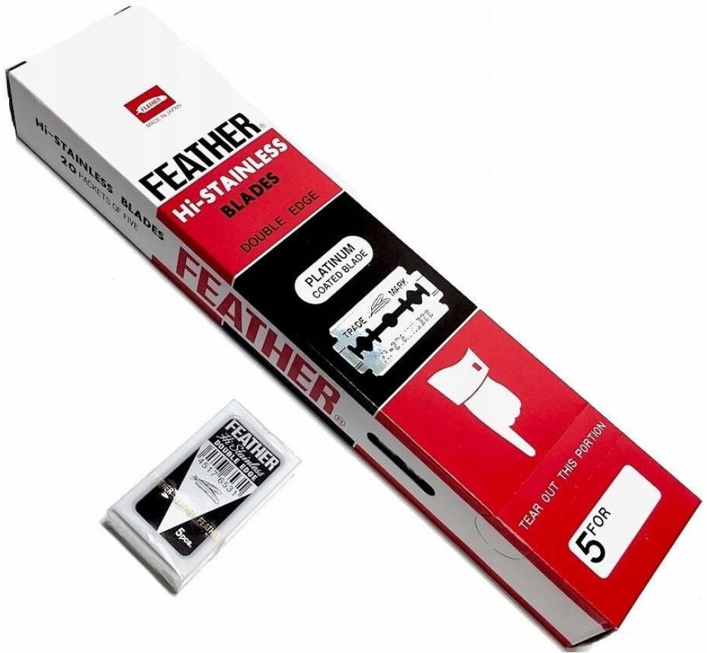 Toto balení obsahuje nejostřejší žiletky na světovém trhu pro holicí strojky typu double edge v ekonomicky výhodném provedení. Žiletky Feather Platinum mají excelentní ostří, které zajistí dokonalé hladké holení, avšak doporučujeme opatrnější použití, než se s nimi seznámíte. Plastová krabička obsahuje dva otvory - z vrchního otvoru vytahujete nové žiletky a do spodního vsouváte použité.