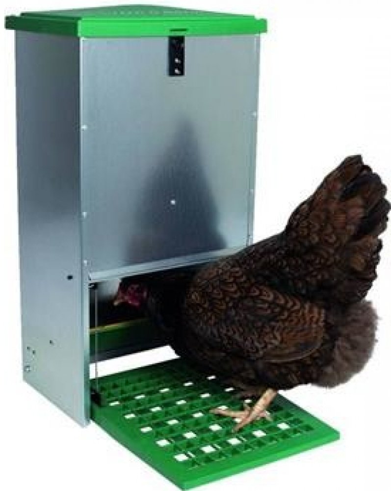 Lepší odolnost vůči venkovním podmínkám díky lepší vodotěsnosti. Velmi trvanlivý plastový nášlap, na kterém se nemohou hromadit exkrementy. Plastové díly jsou vyrobeny z kvalitního materiálu. Snadné doplňování krmné směsi. Dodává se ve třech variantách podle množství krmiva 8, 12 a 20 kg krmiva. Rozměry 5kg - 40x28x26 cm, 8 kg - 45x28x26 cm, 12 kg - 54x36x26, 20 kg - 65x36x26 cm.