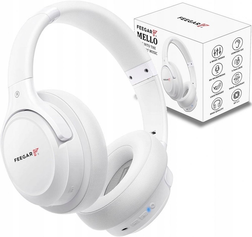 Mello je nejnovější verze Bluetooth sluchátek značky Feegar. Je to je polská značka v oboru spotřební elektroniky. Naše bezdrátová sluchátka s mikrofonem se vyznačují vysoce kvalitním zvukem a velmi pohodlnou konstrukcí s měkkými houbičkami na uši. Nejnovější rozhraní Bluetooth 5.3 zajišťuje stabilní a rychlý přenos signálu a v případě potřeby můžete zařízení připojit pomocí kabelu audio 3,5 mm.