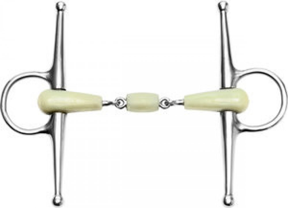 2x lomené roubíkové udidlo s udítkem potaženým plastem s jablečnou příchutí. Vhodné pro mladé a citlivé koně.