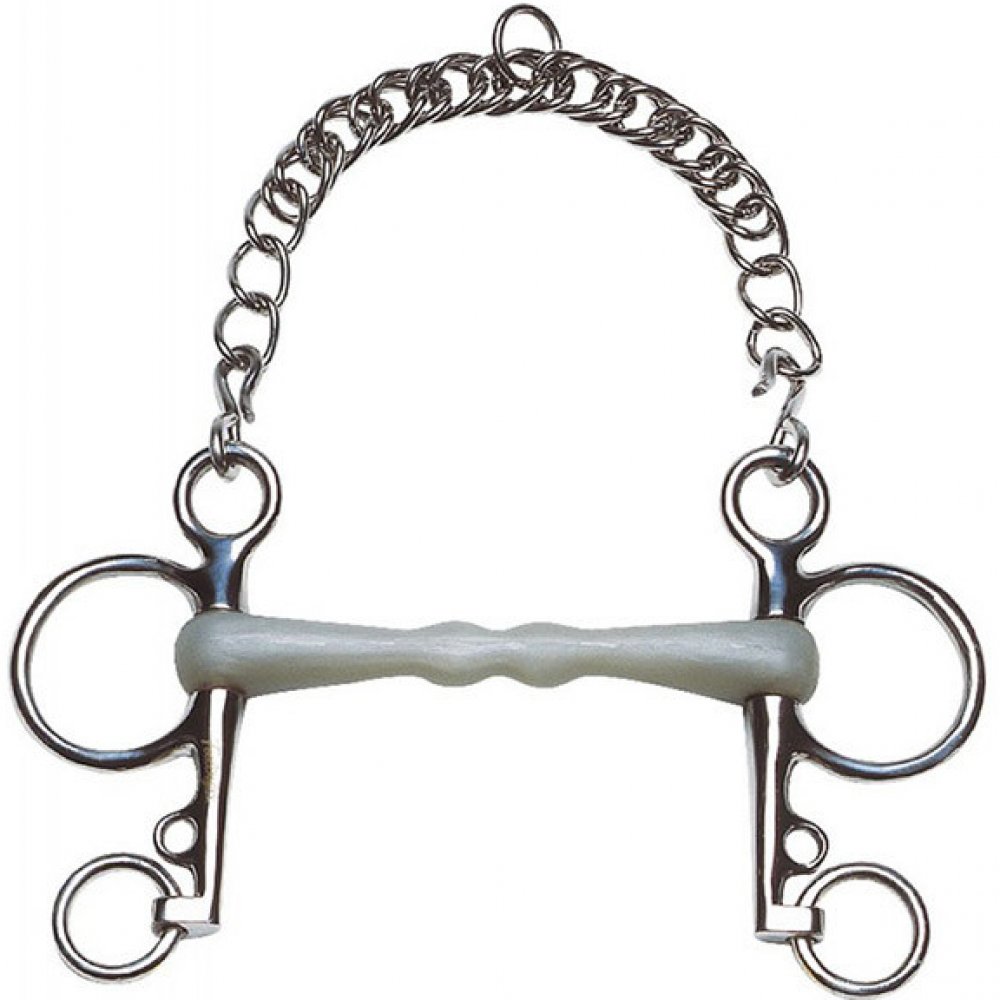 Nelomené udidlo pelham. S podbradním řetízkem, který slouží k podepnutí. Do udidla lze zapnout otěže několika způsoby: A) jako do pákového udidla - pak má udidlo stejný efekt jako páka B) jedny otěže do stihlového kroužku, druhé otěže do pákového kroužku Nelomené udidlo pelham. S podbradním řetízkem, který slouží k podepnutí. Do udidla lze zapnout otěže několika způsoby: A) jako do pákového udidla...