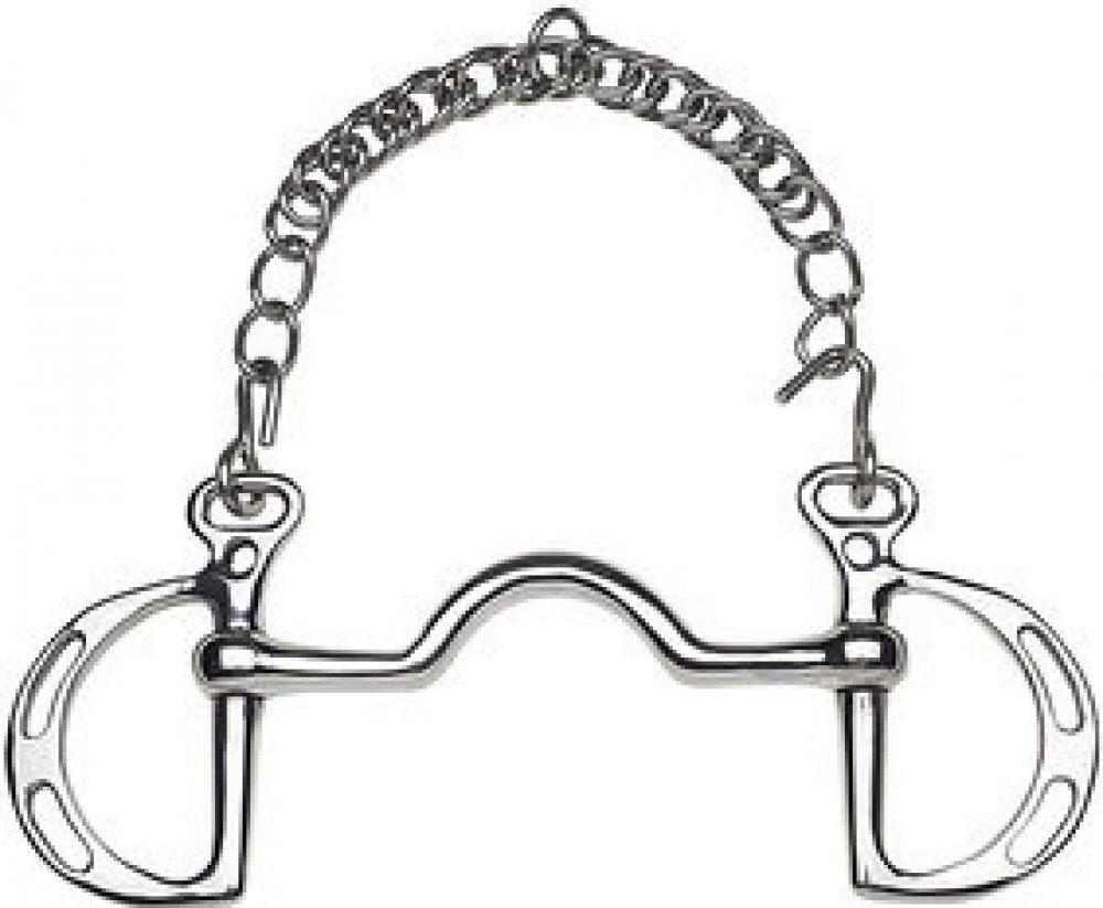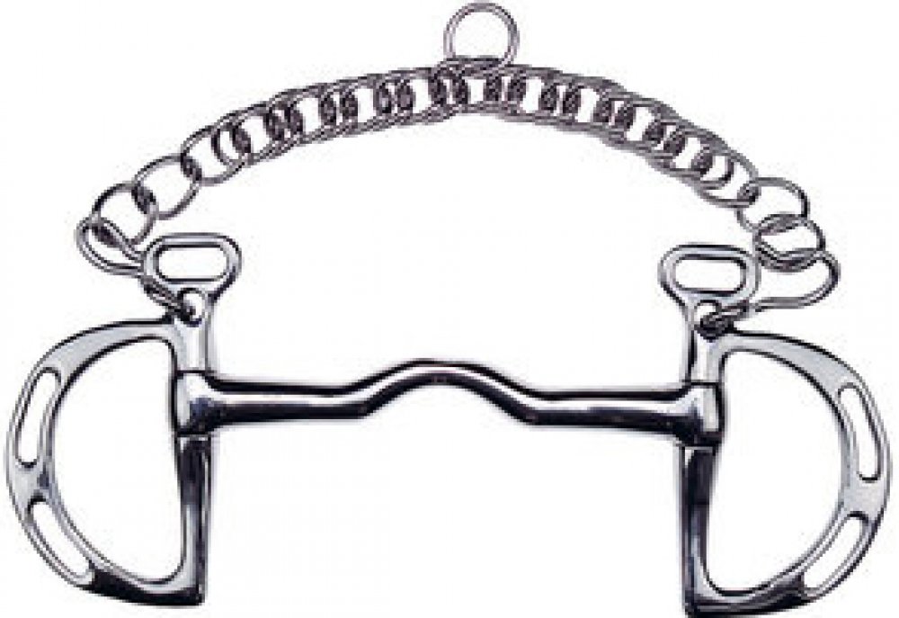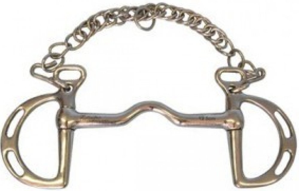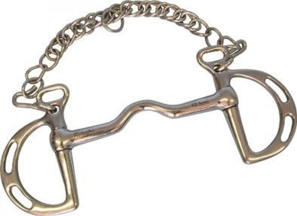 Ostřejší skokové udidlo typu Thiedelman. Možnost regulace ostrosti způsobem podepnutí řetízku a zapnutí otěží. Nelomené vyklenuté udítko poskytuje prostor pro jazyk a zároveň působí na patro koně. Na udidlových kroužcích jsou očka pro různá zapnutí otěží. Podpínací řetízek je součástí dodávky.Plné udítko o tloušťce 13 mm.