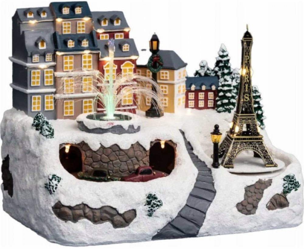 Vánoční dekorace Fééric Lights a Vánoce Pohybující se zimní scéna s Eiffelovou věží