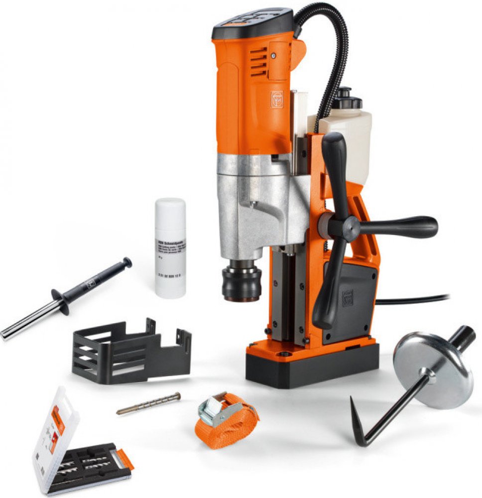 Popis:Malá univerzální 1 stupňová magnetická jádrová vrtačka s dlouhým zdvihem, pravotočivým/levotočivým chodem a maximální funkčností pro flexibilní práci na stavbě.Koncepce s extrémní životností s výkyvně uloženou ochrannou hadicí motorového kabelu pro náročné použití v průmyslu a řemesle.Perfektní hmotnost na jednotku výkonu díky kompaktní konstrukci s optimalizovanou hmotností a vysoce výkonnému motoru FEIN 1 100 W s elektronickým otáčkoměrem pro vysokou stabilitu otáček pro spolehlivou a úspornou práci.Díky pravotočivému/levotočivému chodu, elektronickému nastavení otáček a rozsahu zdvihu 260 mm je možné univerzální použití, např. jádrové, spirálové vrtání, řezání závitů i hloubení a vystružování.Malý a lehký.Jednoduchá koncepce obsluhy bez nebezpečí záměny s panelem v zorném poli uživatele.Komfortní zobrazení přídržné síly magnetu.Vysoká přídržná síla magnetu.Snímač sklonu.Přídavný magnetický spínač ve vrtačkovém stojanu.Integrovaný zásobník chladicí kapaliny.Ruční ovládání posuvu s možností umístění na druhé straně.Paměť otáček „Memory Function“.Osobní ochranný vypínač.Technické parametry:Jmenovitý příkon: 1.100 WVyužitelný výkon: 550 WOtáčky při zatížení: 130-520 1/minKorunkový vrták max. průměr: 35 mmJádrový vrták HSS max. průměr: 35 mmJádrový vrták max. vrtací hloubka: 50 mmSpirálový vrták max. průměr: 16 mmŘezání závitů: M14Zahlubování max. průměr: 31 mmVystružování max. průměr: 16 mmUpnutí jádrového vrtáku: 3/4" WeldonVýměna jádrového vrtáku: bez nářadíCelkový rozsah zdvihu: 260 mmPřídržná síla magnetu: 10 000 NRozměry magnetického podstavce: 175 x 80 mmKabel se zástrčkou: 4 mHmotnost dle EPTA: 10,70 kgRozsah dodávky:1 nádoba na chladicí kapalinu1 pás1 hák na třísky1 středicí kolíky1 dotyková ochrana1 kufřík