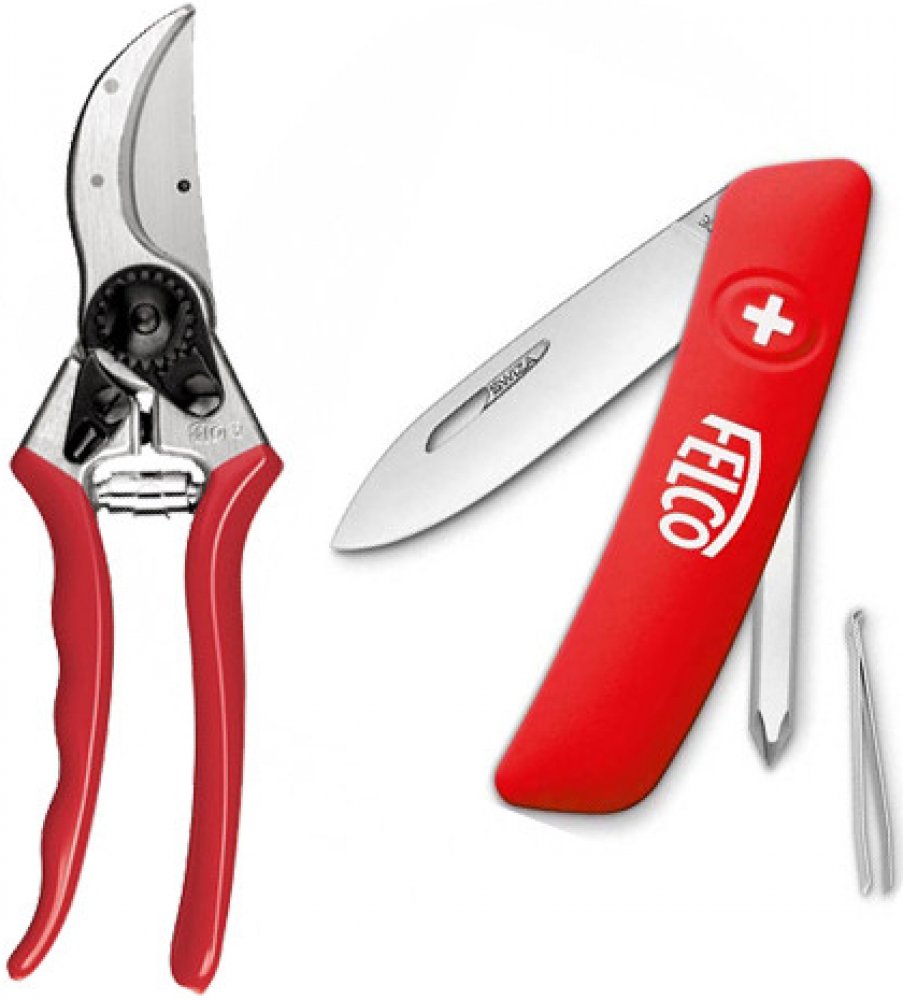 Dárkový set s nůžkami FELCO 2 pro velkou ruku a kapesním švýcarským nožíkem FELCO 502 – to celé v hezkém dárkovém balení! Nůžky FELCO 2 Model pro velkou ruku Střih do průměru 25mm Plná rukojeť z kovaného hliníku Délka 215mm Hmotnost 240g Vhodné především do parků a zahrad, ale také pro oblast vinařství a sadařství Díky kvalitnímu ostří a protiostří se nemusíte bát ustřihnout větší větvičky. Spolehlivost: Komfortní, lehká a robustní rukojeť z kovaného hliníku s doživotní zárukou. Ostří a protiostří je vyrobeno z vysoce kvalitní tvrzené oceli. Čistý a precizní střih. Všechny díly jsou snadno vyměnitelné. Vlastnosti: Jednoduché a trvalé nastavení střihu. Zářez pro odsřihávání drátu. Drážka pro odvod šťáv. Ergonomie: Díky ideálnímu tavaru rukojeti a dorazům s tlumícím účinkem šetří ruce a zápěstí. Protiskluzová úprava rukojeti. Kapesní švýcarský nůž FELCO 502 Nůž se 4 funkcemi : ostří 75 mm, Bezpečnostní pojistka ostří, Křížový šroubovák č.1, Pinzeta ergonomický design s revolučním tvarem robustní ostří z ušlechtilé nerezové oceli (AISI 440, 57 HRC) Ostří a další nástroje jsou díky skvělému tvarování snadno otevíratelné také pro leváky Kompaktní konstrukce nože s ocelovými vložkami Střenka upravena speciální vrstvou soft-touch pro příjemný a jistý úchop Nůž je možno čistit v myčce na nádobí (do 80°C) Doživotní záruka na konstrukci nože Nehetník na ostří umožní snadné otevření nože jak pravákům tak take levákům.