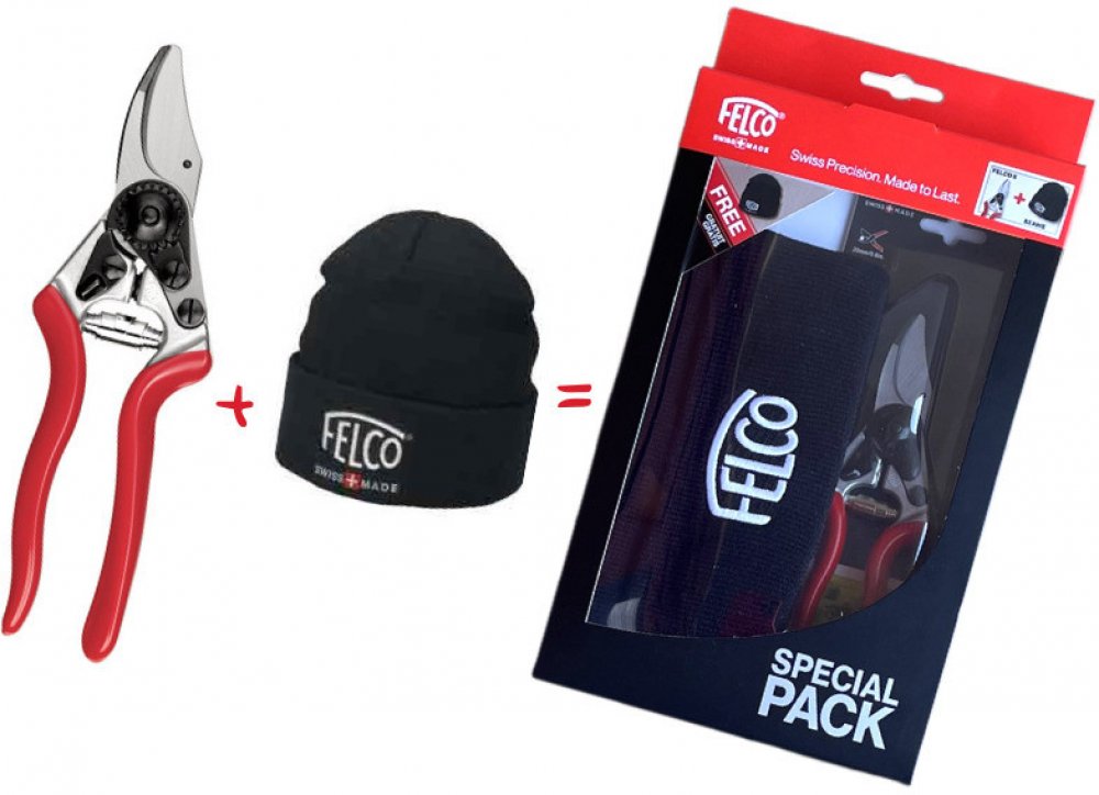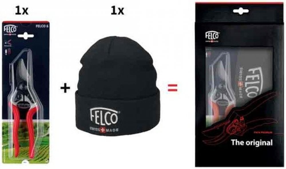Dárkový set s profesionálními nůžkami FELCO 6 pro středně velkou ruku a zimní čepicí – to celé v hezkém dárkovém balení! Spolehlivost: komfortní, lehká a robustní rukojeť z kovaného hliníku s doživotní zárukou. Ostří a protiostří je vyrobeno z vysoce kvalitní tvrzené oceli . Čistý a precizní střih. Všechny díly jsou snadno vyměnitelné. Vlastnosti: jednoduché a trvalé nastavení střihu. Odstřihovač drátu. Drážka pro odvod šťáv. Ergonomie: díky ideálnímu tvaru rukojeti a dorazům s tlumícím účinkem šetří ruce a zápěstí. Protiskluzová úprava rukojeti. Pro snížení vynaložené síly při stříhání a zabránění vzniku zánětu šlach jsou stříhací hlavice nůžek zkosené