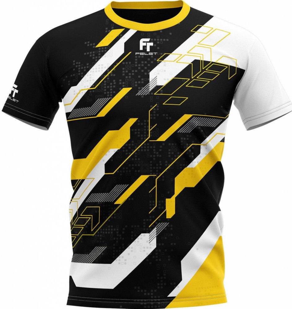 Tričko je charakterizováno elegantní kombinací černé barvy s žlutými a bílými prvky, které mu dodávají svěžest a výrazný vzhled. Černý základ s jemnými žlutými a bílými akcenty vytváří sofistikovaný a stylový kontrast, který přitahuje pozornost a přidává tričku jedinečnost. Jeho design je zaměřen na čisté linie a detaily, které dodávají tričku šmrnc a osobitost.