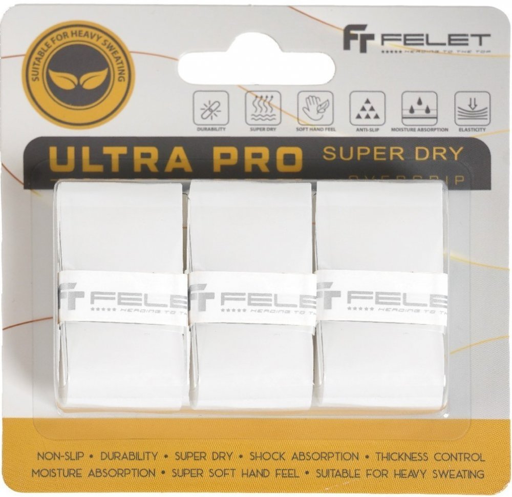 Omotávka Felet Ultra Pro Over Grip je navržena tak, aby poskytovala vynikající přilnavost díky svému povrchu, který zabraňuje sklouznutí. Jeho materiál PU zajišťuje vysokou odolnost a dlouhou životnost, i při náročném používání. Speciální povrchová úprava udržuje rukojeť suchou, což je ideální pro hráče s tendencí k nadměrnému pocení. Navíc absorbuje nárazy a vibrace, což zvyšuje pohodlí během hry. Tento overgrip je dostupný v několika barvách a svou měkkou strukturou poskytuje příjemný pocit při držení.