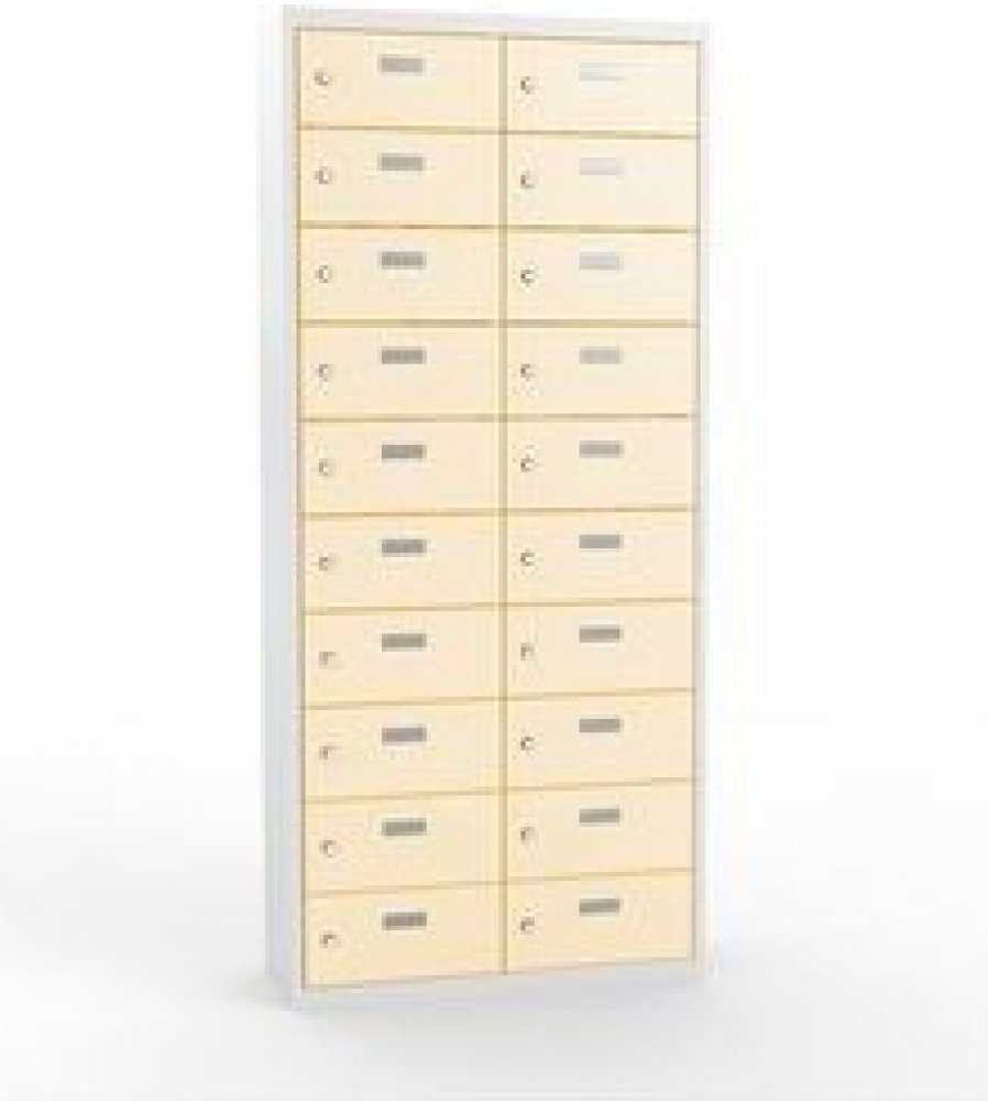 Skříně ze svařovaného plechu s malými schránkami na uložení osobních věcí.Vhodné do kantýny, posiloven, fitness center, bazenů nebo recepce hotelů.Jednotlivé schránky jsou samostatně uzamykatelné cylindrickým zámkem na klíč.Možnost vložení štítku se jménem nebo číslem na dvířka každé schránky.Součástí balení jsou 2 klíče ke každé schránce.