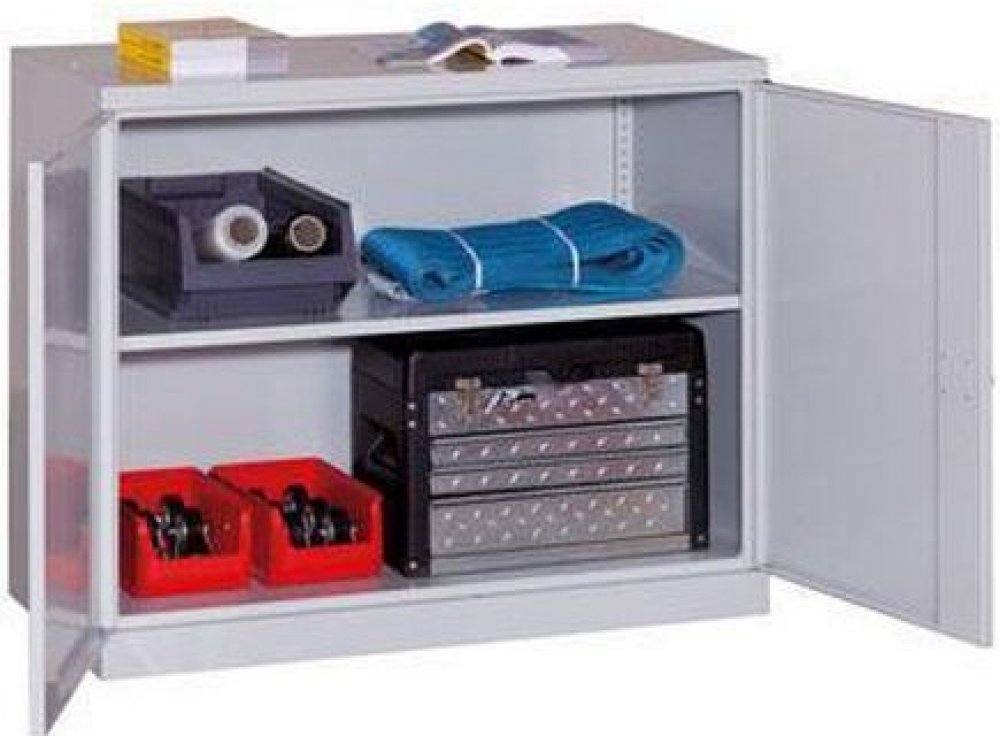 Dílenské skříně na nářadí jsou vybaveny dvěma výškově přestavitelnými policemi v rastru 25 mm. Kovové skříně jsou vyrobeny ze svařované konstrukce z ocelového plechu. Dveře skříní lze uzamknout rozvorovým zámkem. Plechové skříně jsou nabízeny ve třech barevných variantách.rozměry v x š x h: 104 x 100 x 60 cmmateriál: ocelový plech tl. 1 mmnosnost: 200 kgnosnost na polici: 100 kgpočet polic: 2 ksba...