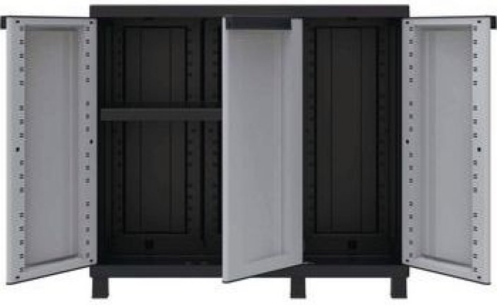 Plastová dvoj-skříň TwistBlack je vyrobená z plastu odolného vůči vlhkosti, vysokým teplotám a chemicky agresivnímu prostředí. Prostor první skříně je rozdělen nastavitelnou policí, druhá nabízí volný prostor. Je jednoduše omyvatelná běžnými čisticími prostředky.rozměry v x š x h: 91,5 x 102 x 39 cmmateriál: plastnosnost na polici: 20 kgpočet polic: 1 ksbarva: černábarva dveří: šedáuzamykání visacím zámkem (není součástí dodávky), dodávka v demontovaném stavu