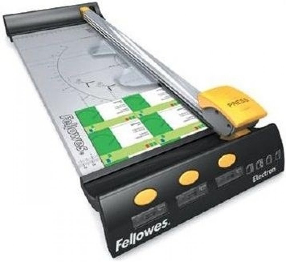 Vícefunkční řezačka Fellowes Electron je určena pro široké spektrum uživatelů v kanceláři nebo domácí kanceláři. Je vhodná pro menší zatížení. Pokud chcete docílit přesného řezu (grafická studia apod.), kupte položku 388960 - KW-triO Kolečková řezačka KW eco 46, A3, kovová základna nebo 388964 - KW-triO Kolečková řezačka KW 480, A3+, kovová základna!!!