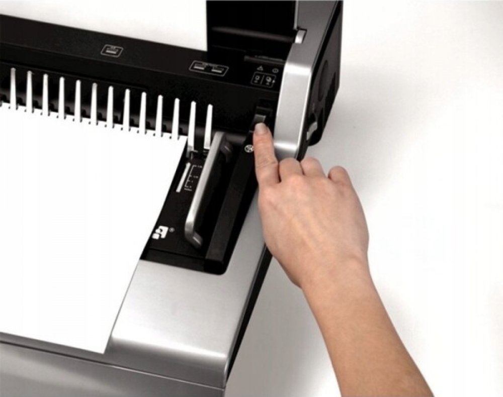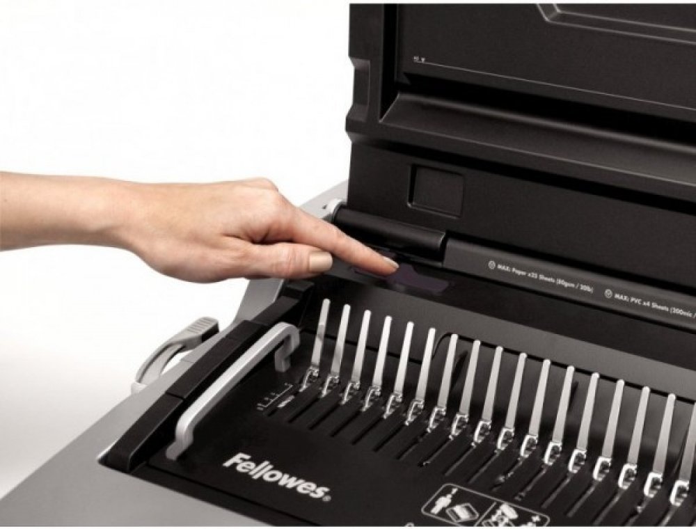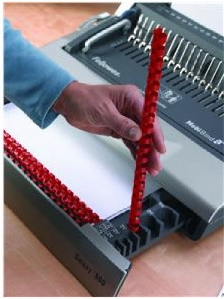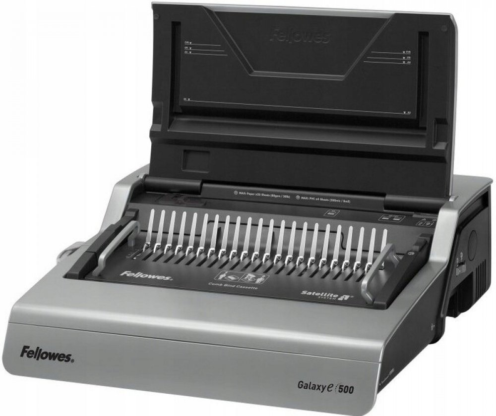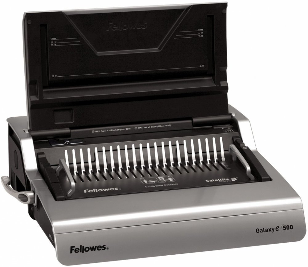 Jedinečné provedení robustního vázacího stroje s uživatelsky samostatně provozovatelnou vázací jednotkou nabízí elektrický model Fellowes Galaxy E. Děrovací kapacita až 28 listů 80g papíru. Kapacita vazby až 510 listů (do průměru hřbetu 51 mm). Možnost nastavení vzdálenosti děrod okraje svazku. Vyřaditelné perforační nože (pro formát A5).