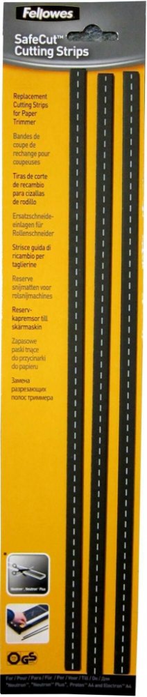Náhradní gumové pásky určené pro řezačky Fellowes Electron a Proton, jejichž řezání funguje na principu tlaku proti gumovému pásku. Sada obsahuje tři kusy pásků vhodné pro řezání papíru až do formátu A3. Parametry a specifikace:Určeno pro:Řezačky Fellowes Electron a ProtonObsah balení:3 x gumová páska A3