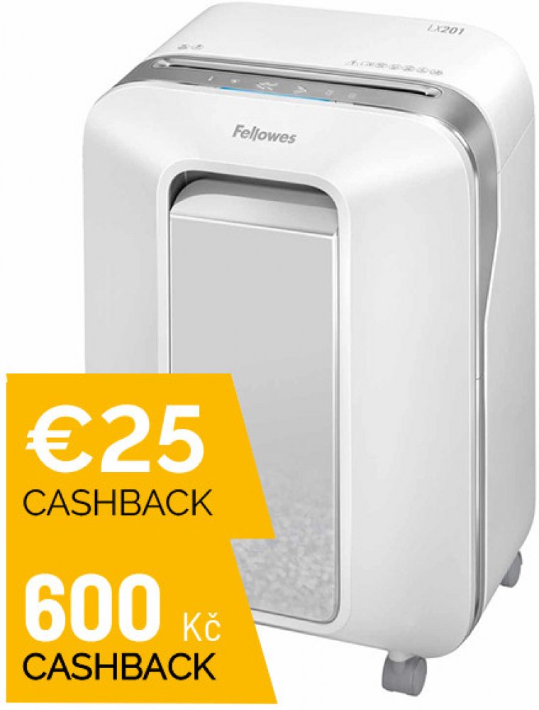 skartovací stroj Fellowes LX201 s moderním designem je vhodný pro 1 uživatele nebo