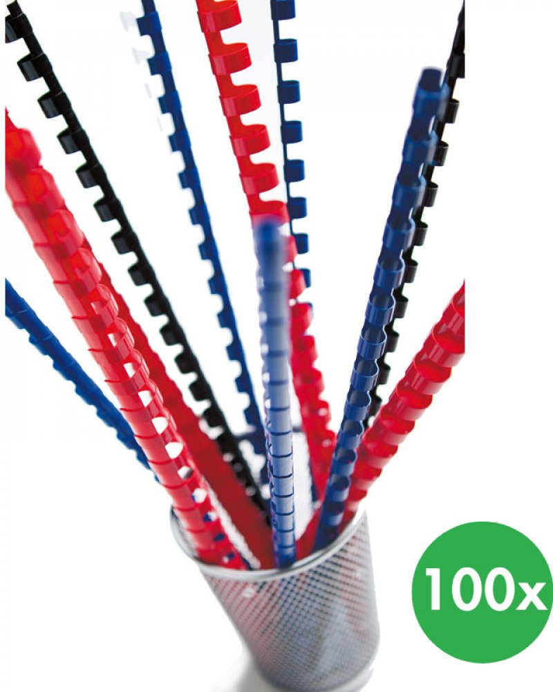 Nejrozšířenější způsob kroužkové vazby do pružných plastových hřbetů vyniká svojí jednoduchostí, možností opětovného rozebrání a především nízkou pořizovací cenou. Plastové hřbety o průměru 8 mm jsou určeny pro vazbu 21-40 listů 80g papíru. Balení obsahuje 100 ks hřbetů.