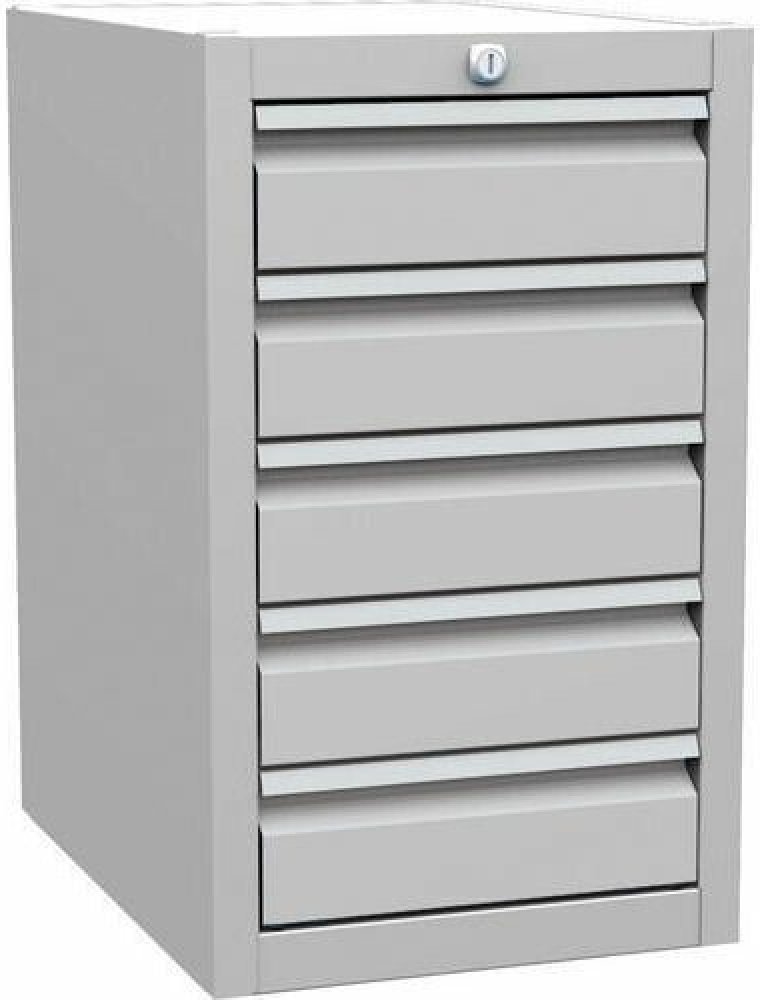 Závěsný kontejner s pěti zásuvkami zabezpečíte pomocí cylindrického zámku s centrálním uzamykacím mechanismem.Zásuvkový kontejner lze připevnit k pracovnímu stolu vpravo, nebo vlevo pod pracovní plochu.Zásuvky jsou vybaveny 75% kuličkovými výsuvy.