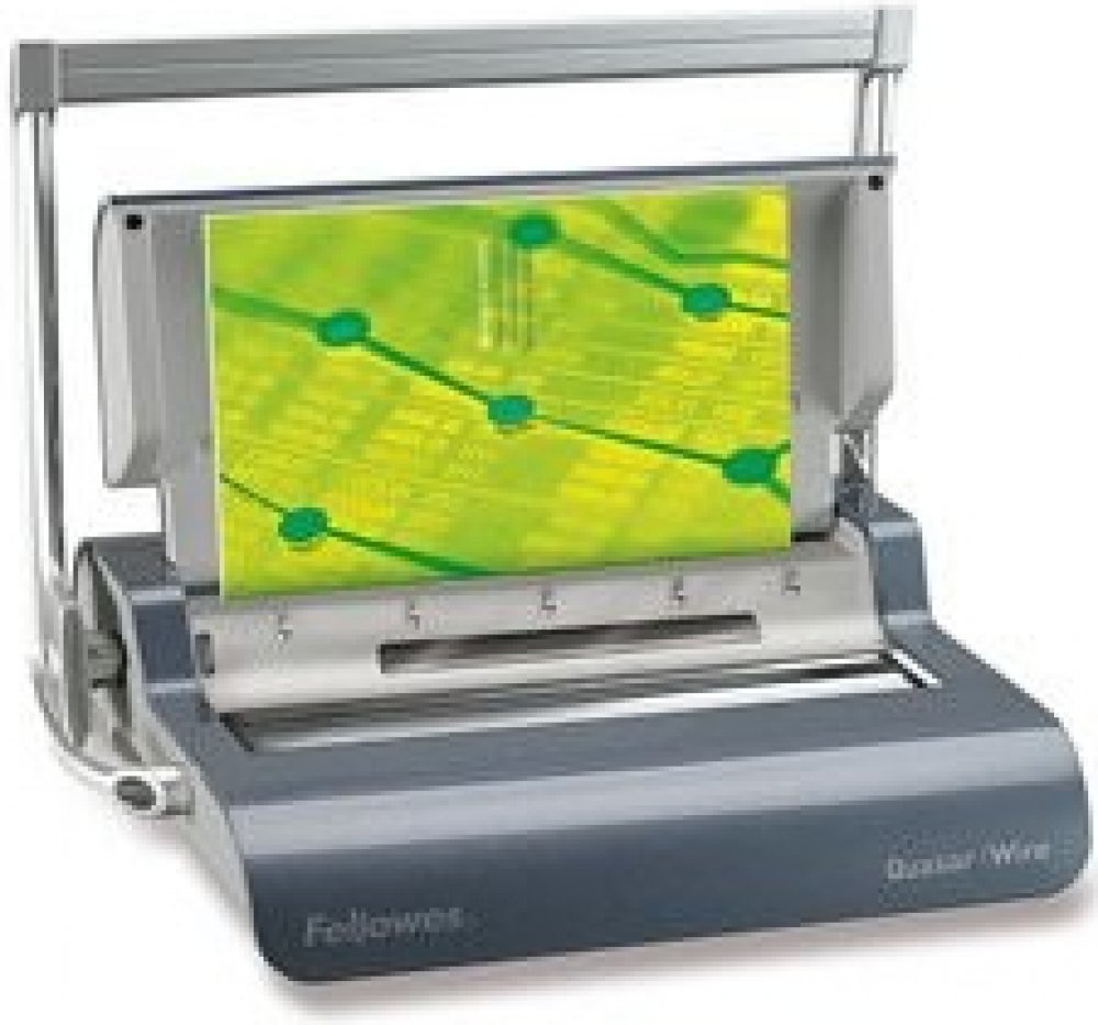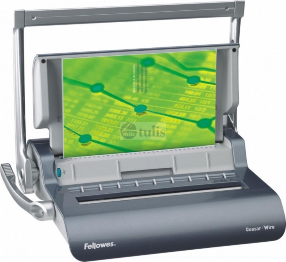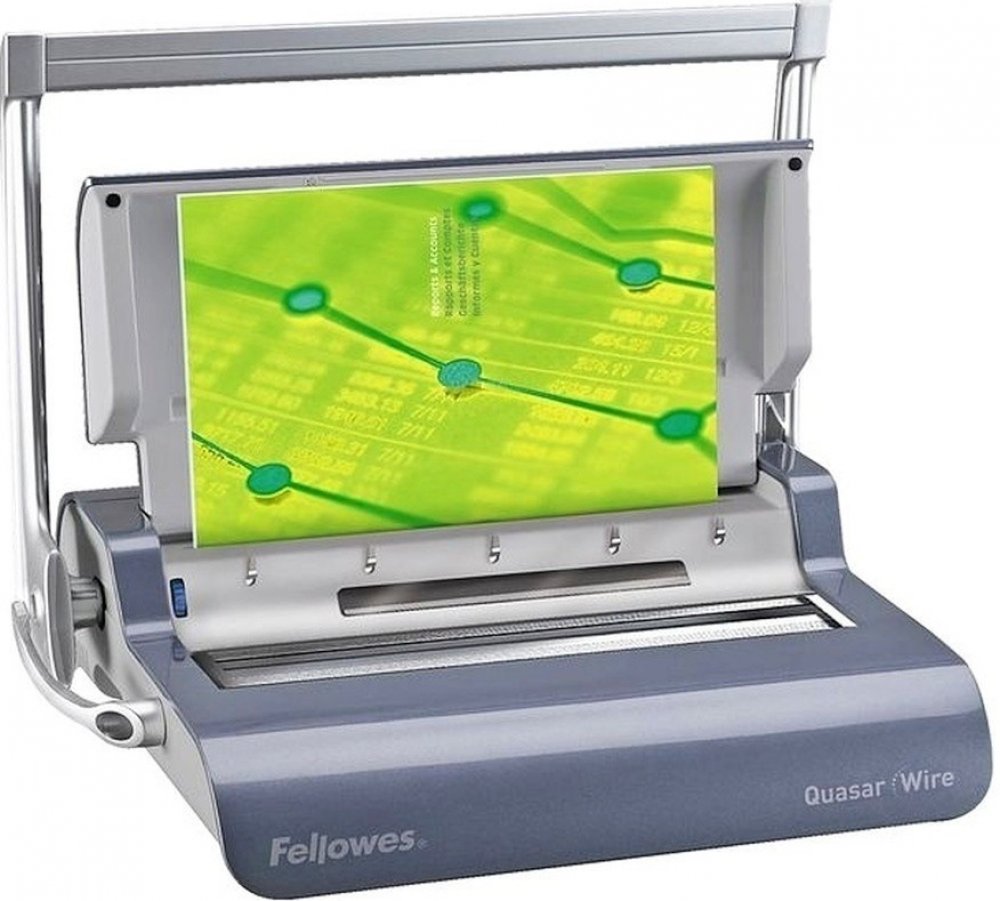 Ruční vazač Fellowes Quasar Wire pro vazbu do kovových hřbetů s roztečí ok 3/1" (4,8 mm – 14,3 mm). Uživatelsky velice příjemný. Vhodný pro použití v kanceláři. Děrovací kapacita až 15 listů 80 g papíru. Kapacita vazby až 120 listů.