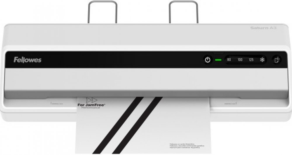 Fellowes laminátor Saturn A3 s novým atraktivním designem v bílé barvě. Laminování za cca 1 min od zapnutí. Umožňuje kvalitní laminaci až do formátu A3 v rozsahu 80-125 mic tloušťky laminovacího filmu, včetně laminace fotografií. Max. tloušťka dokumentu 0,5 mm. Je vhodný pro laminaci v kanceláři. Stroj je vybaven unikátním systémem Jam Free, který významně snižuje riziko uvíznutí laminovaného doku...