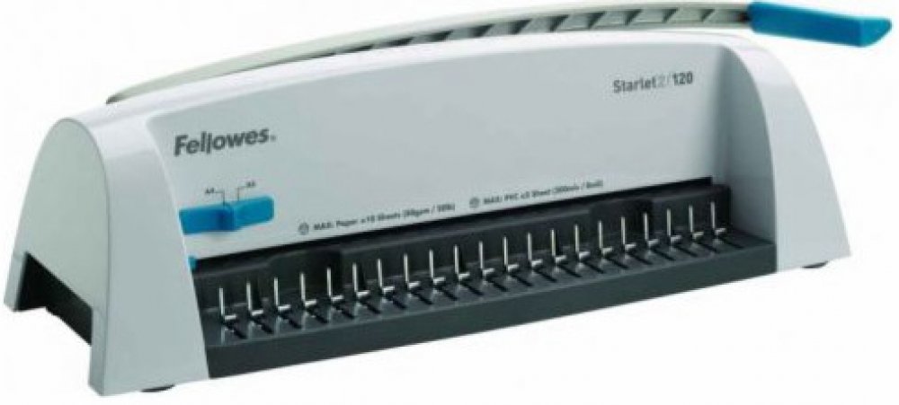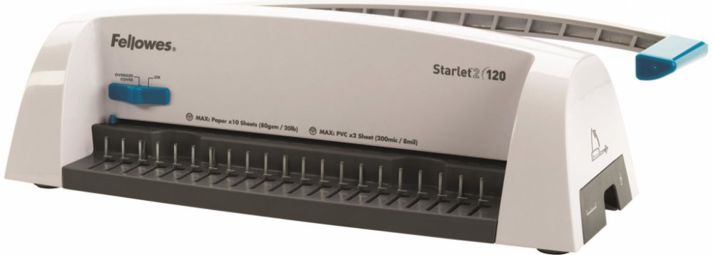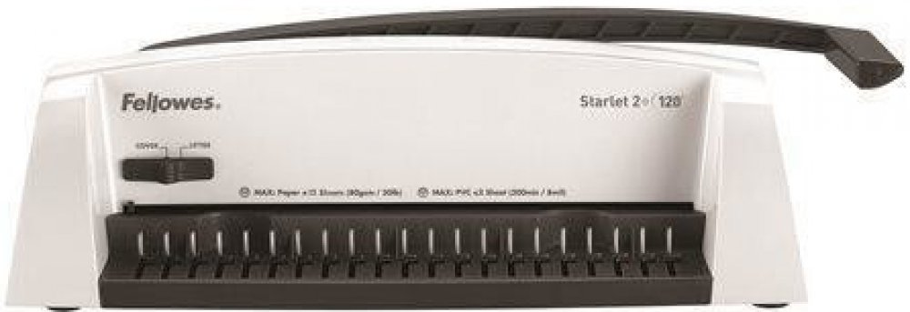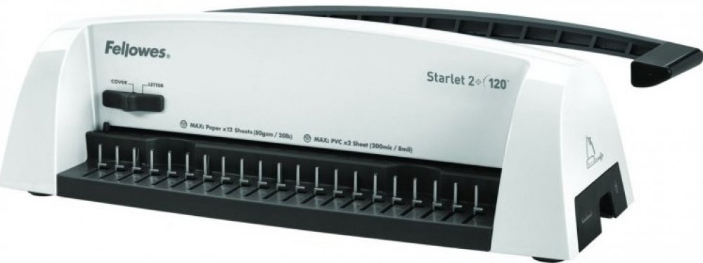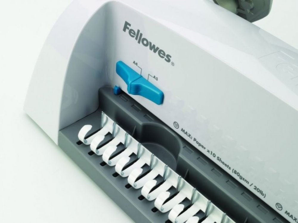 Základní model nové designové řady vázacích strojů Fellowes pro příležitostnou vazbu. Děrovací kapacita až 12 listů 80 g papíru. Kapacita vazby až 120 listů (do průměru hřbetu 16 mm). Vazač má dvě přednastavené pozice – pro děrování formátu A4 a A5.