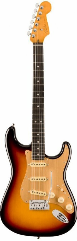 Elektrická kytara Elektrické kytary Fender z řady American Ultra spojují nadčasový design nástrojů značky Fender s těmi nejmodernějšími prvky. Potěší tak především muzikanty, co upřednostňují u kytar maximální flexibilitu. Olšové tělo kytary American Ultra II Stratocaster HSS MN SRD nabízí tradiční prvky série American Ultra v podobě ergonomických výřezů těla a zkosené patky krku, které vám poskytnou ideální dohmat i na vyšších polohách hmatníku. Javorový krk s „Modern D“ profilem, tj. užší krk s širšími rameny, zaoblené hrany hmatníku, rádius hmatníku (10” – 14”) a dvaadvacet pražců velikosti Medium Jumbo zaručují jak pohodlnou hru akordů u nultého pražce, tak i komfortní provedení rychlých sól (shred). Orientaci na hmatníku i za šera usnadňují luminiscenční tečky na boku. Kombinace kobylkového humbuckeru Haymaker a dvou Ultra II Noiseless Hot Strat single-coilů poskytuje kytaře širokou škálu zvuků - od krystalicky čistých tónů po řádně žhavý overdrive pro rockové riffování a kytarová sóla. Cívky humbuckeru lze navíc rozdělit pomocí S-1 switche a změnit tak nastavení na single-coil. K úpravám zvuku slouží ovladač hlasitosti, dvě tónové clony a pětipolohový přepínač snímačů. Treble Bleed obvod zabraňuje zvýraznění basových frekvencí při stahování hlasitosti ovladačem Volume. Stabilitu ladění zaručuje uchycení strun přes nultý pražec z materiálu Graphtech TusQ ve firemních uzamykatelných mechanikách (Deluxe Cast/Sealed Locking) a v synchronizovaném 2-point tremolu se sedly z nerezové oceli. Stylový vzhled kytary podtrhuje jednovrstvý hliníkový pickguard (Black Anodized). Kytara je dodávána v kufru.