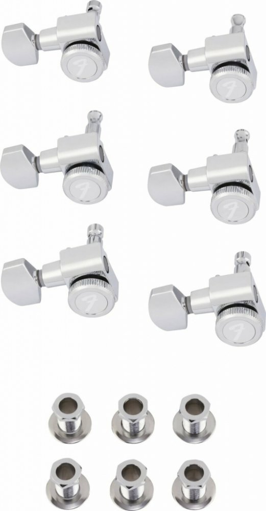 Sada šesti uzamykacích ladících mechanik navržených tak, aby vyhovovala většině levorukých moderních elektrických kytar Fender s konfigurací montáže pomocí dvou pinů. Pro navinuté struny se používají vysoké mechaniky a pro obyčejné struny se používají kratšiemechaniky. Stupňovité mechaniky zvětšují úhel zlomu přes matici a zlepšují stabilitu ladění.vlastnosti:- Sada šesti ladících mechanik (3 dlouhé a 3 krátké)- Převodový poměr 18:1- Upevnění na dvojitý vodicí kolík- Součástí jsou pouzdra a podložky- Použité na levorukých kytarách American Deluxe a American Elite Series- Součástí je montážní hardware