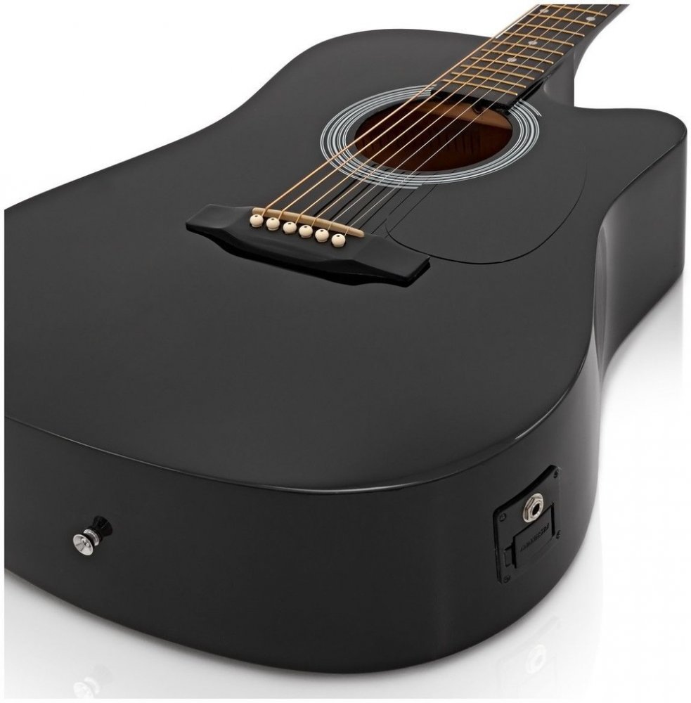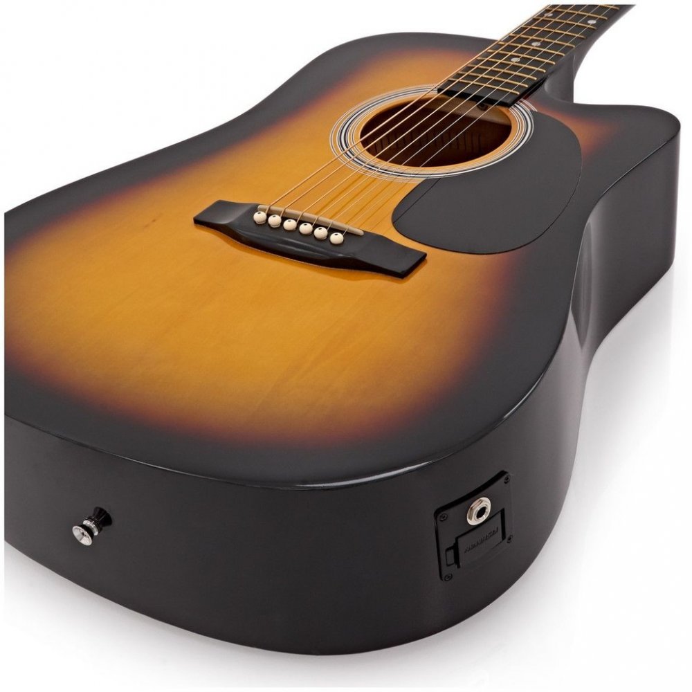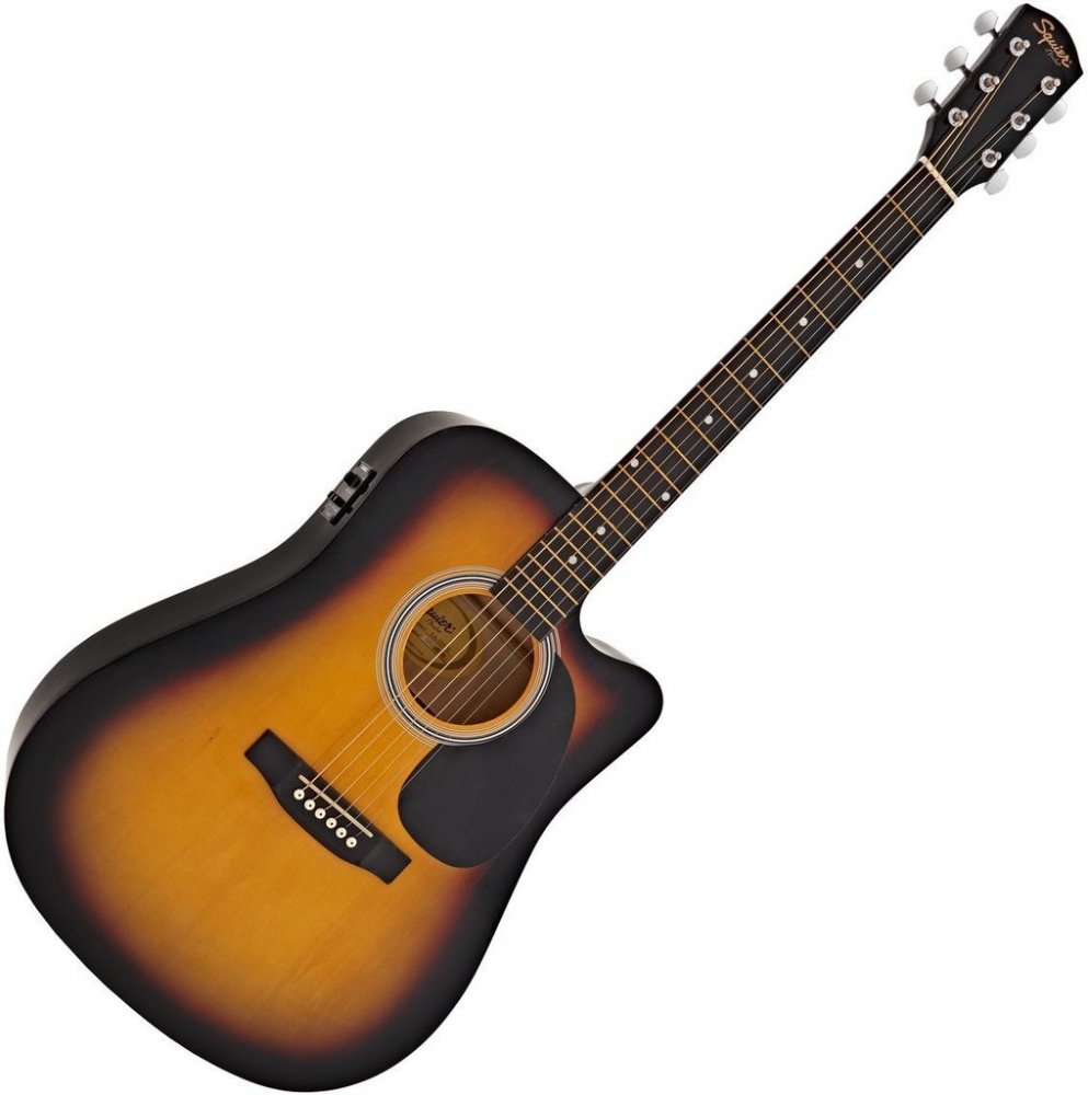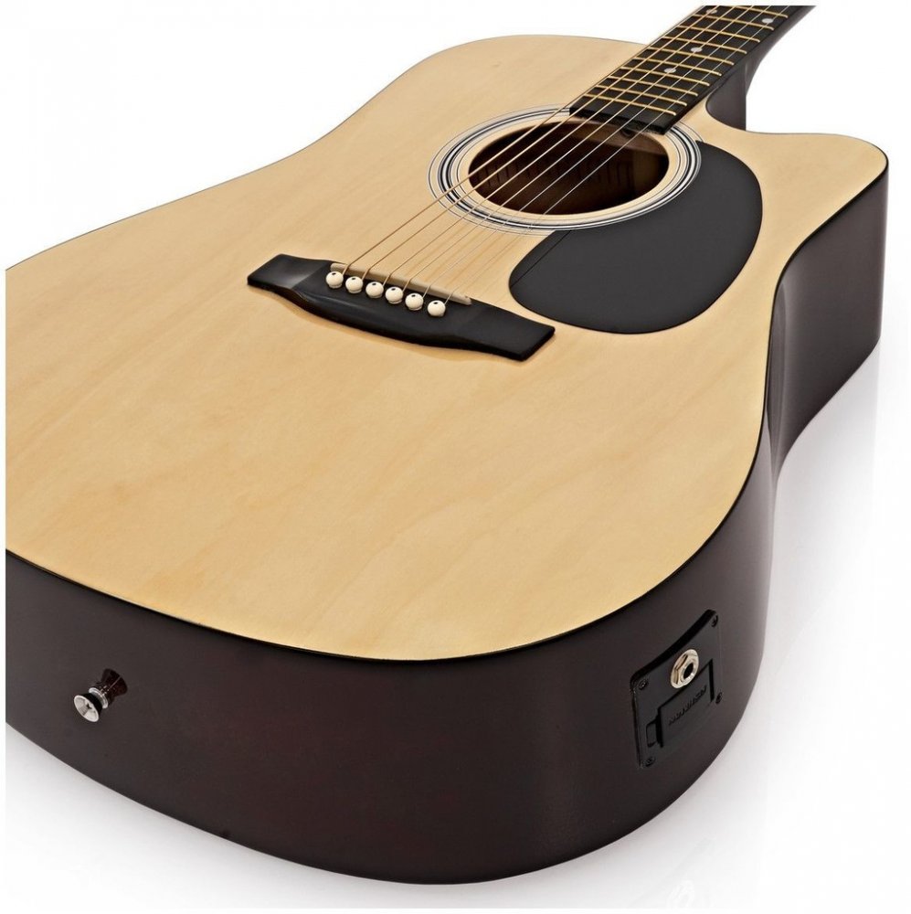 Kytary Fender Squier jsou ideální volbou pro začátečníky i lehce pokročilé hráče. Elektroakustická kytara s tělem ve tvaru Dreadnought s výřezem. Přední deska je vyrobena ze smrkové překližky, zadní deska a luby pochází z exotické dřeviny NATO. Korpus je vybaven zpevňující křížovou výztuhou s podélnými výřezy, která přispívá k výborné rezonanci a bohatému plnému zvuku.