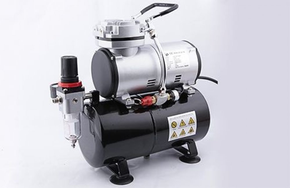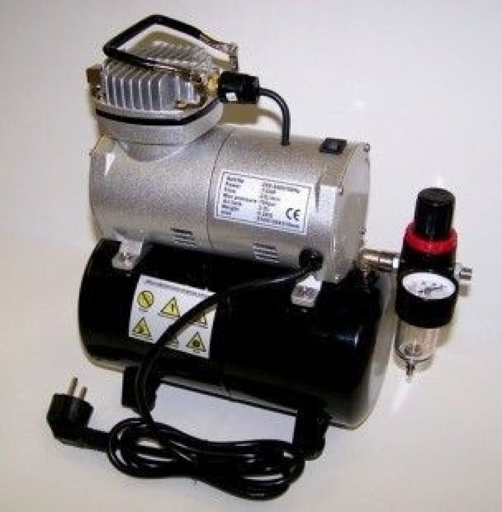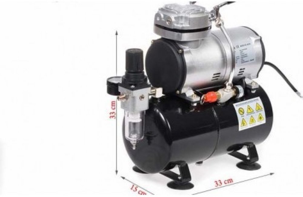 kompresor s tlakovou nádobou o objemu 3l, který je vybaven bezpečnostním ventilem a