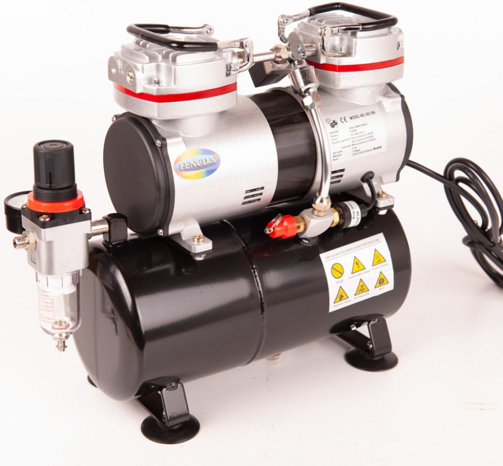S kompresorem Fengda AS-196A můžete pohánět všechny airbrush stříkací pistole (nezáleží na velikosti trysky) i jiné stříkací pistole (klasické stříkací pistole podle spotřeby vzduchu).