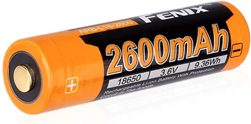 Špičkové nabíjecí baterie Fenix 18650 2600 mAh (ARB-L2) s ochranou (protected) jsou založeny na lithium iontové technologii. Li-ion nabíjecí baterie se vyznačují velmi vysokou kapacitou, netrpí paměťovým efektem a ani samovybíjením. Li-ion ve velikosti 18650 jsou nejlepší volbou z hlediska uchované energie vzhledem k rozměrům a váze akumulátoru.