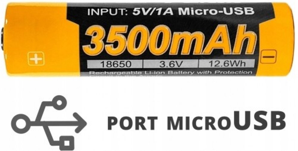 Dobíjecí USB baterie 18650 ( 3500 mAh) Fenix disponuje PTC ochranou a vlastním nabíjecím micro-USB konektorem. Baterie je