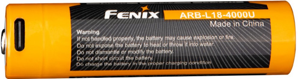 Fenix 18650 nabíjecí baterie s USB-C vstupem pro dobíjení - Li-Ion baterie s vysokou kapacitou 4000 mAh. Nabíjecí baterie Fenix 18650 netrpí samovybíjením ani paměťovým efektem. Obsahuje ochranou elektroniku zabraňující přehřátí při přílišném odběru, zkratu, přebití nebo úplnému vybití.