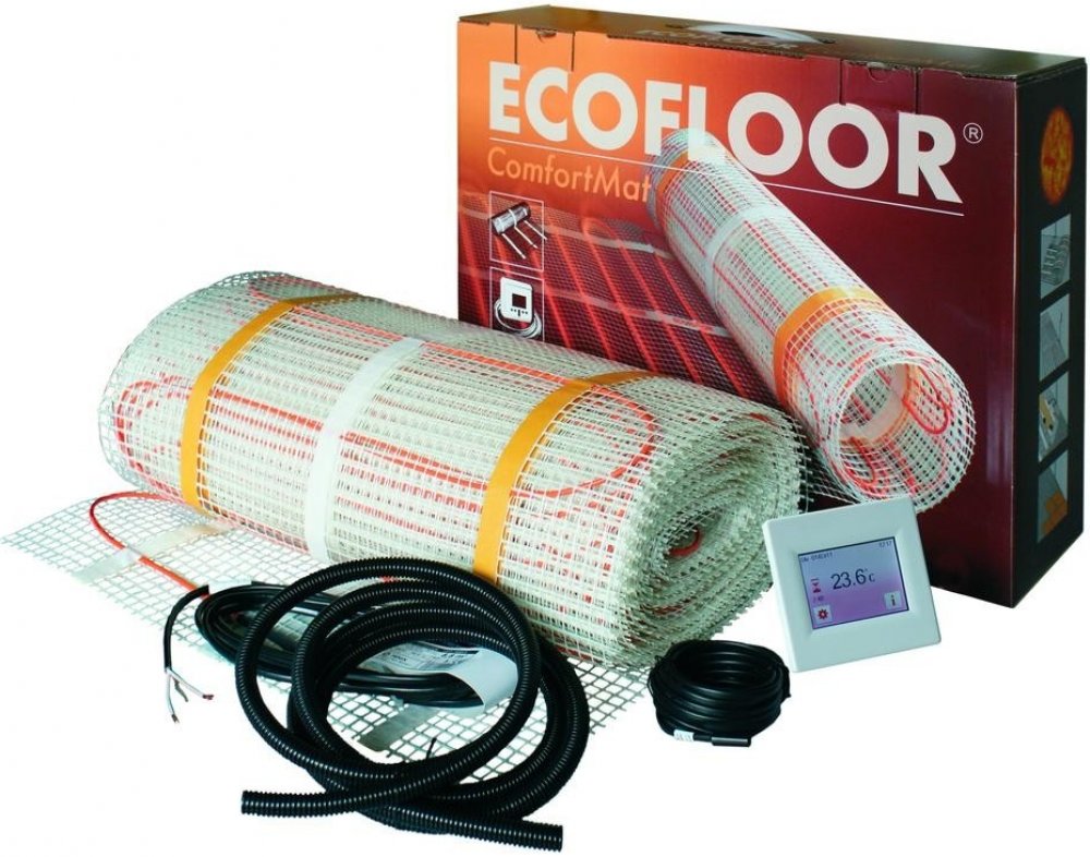 Sada obsahuje elektrickou topnou rohož s dvoužilovým kabelem s ochranným opletením a digitální termostat s podlahovou sondou. Příkon 100 W/m² je určen spíše jako hlavní zdroj vytápění (celodenní provoz) v běžných obytných místnostech. Pro občasné komfortní vyhřívání podlahy v koupelnách a kuchyních je vhodnější příkon 160 W/m².