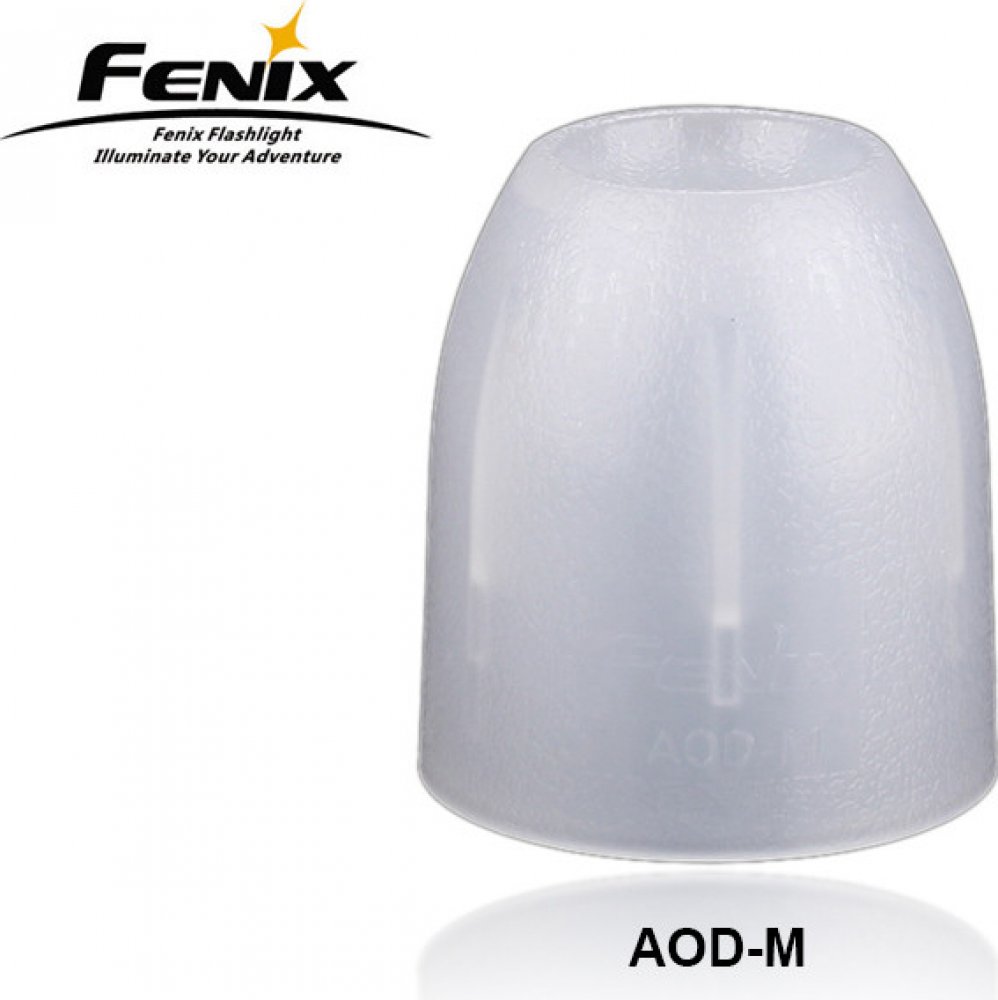Bílý všesměrový difuzér Fenix AOD-M vhodný pro svítilny s průměrem hlavy 34 - 40 milimetrů. Difuzér rozptyluje původně velmi úzký světelný paprsek reflektoru svítilny do všech stran. Použití svítilny se tak rozšiřuje i o funkci lampičky například pro pohodlné osvětlení místnosti či stanu nebo lze baterku využít i jako signální lampu. Horní část difuzéru je rovná, takže na něj lze svítilnu i postavit.