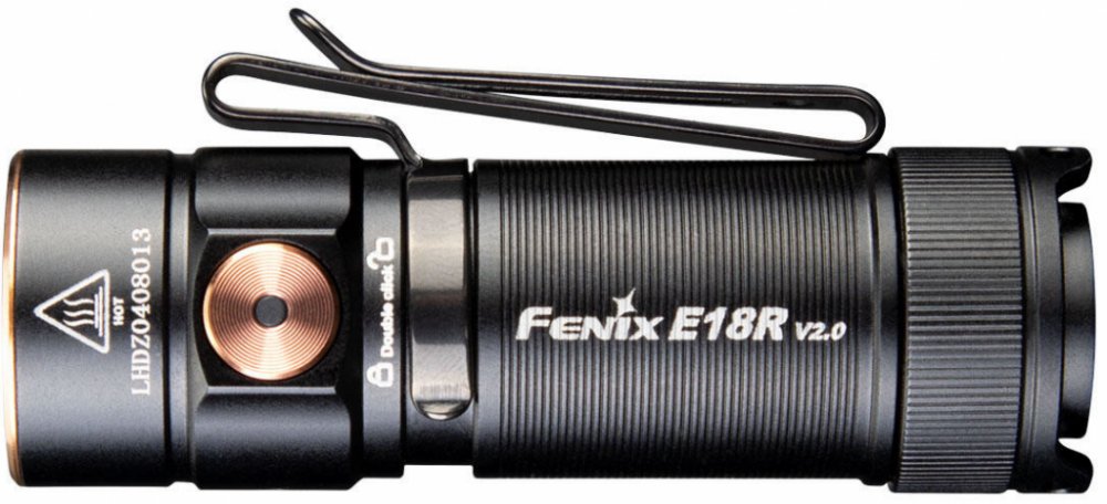 - Fenix E18R V2.0 je vybavena ochranou proti přepólování a upozorněním na vybitý akumulátor (funkční při použití RCR123A).