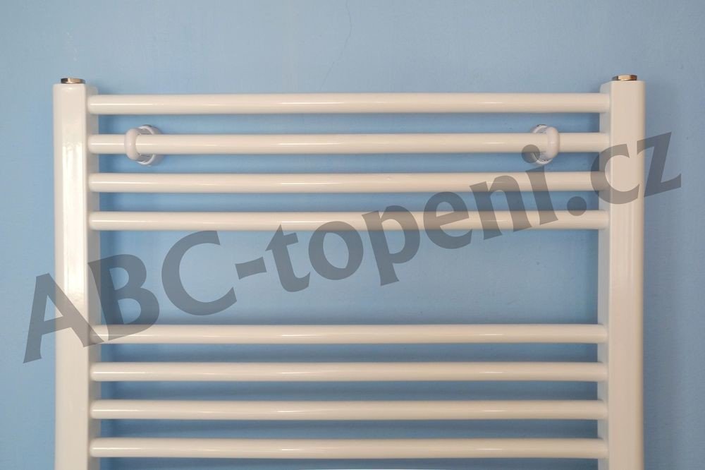 Elektrický topný žebřík K-E v provedení rovný, je dodáván v bílé barvě RAL9016. Topný žebřík je osazen nerezovou topnou tyčí osazenou tepelným omezovačem nastaveným na 85°C (maximální teplota média v tělese). Elektrický topný žebřík je naplněn speciální kapalinou s bodem tuhnutí -5°C. K připojení slouží kroucený připojovací kabel o délce 1m(rozvinutý 3,5m) ukončený zátrčkou. Elektrický radiátor K-...