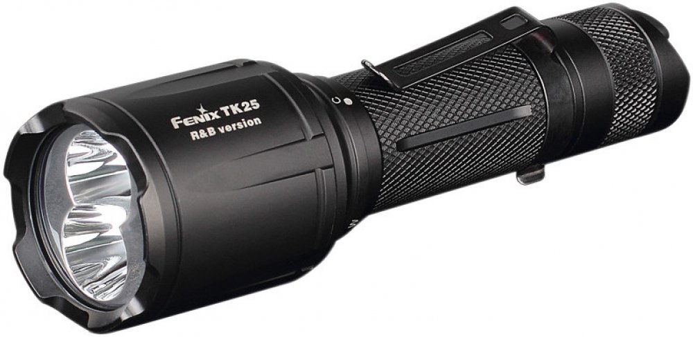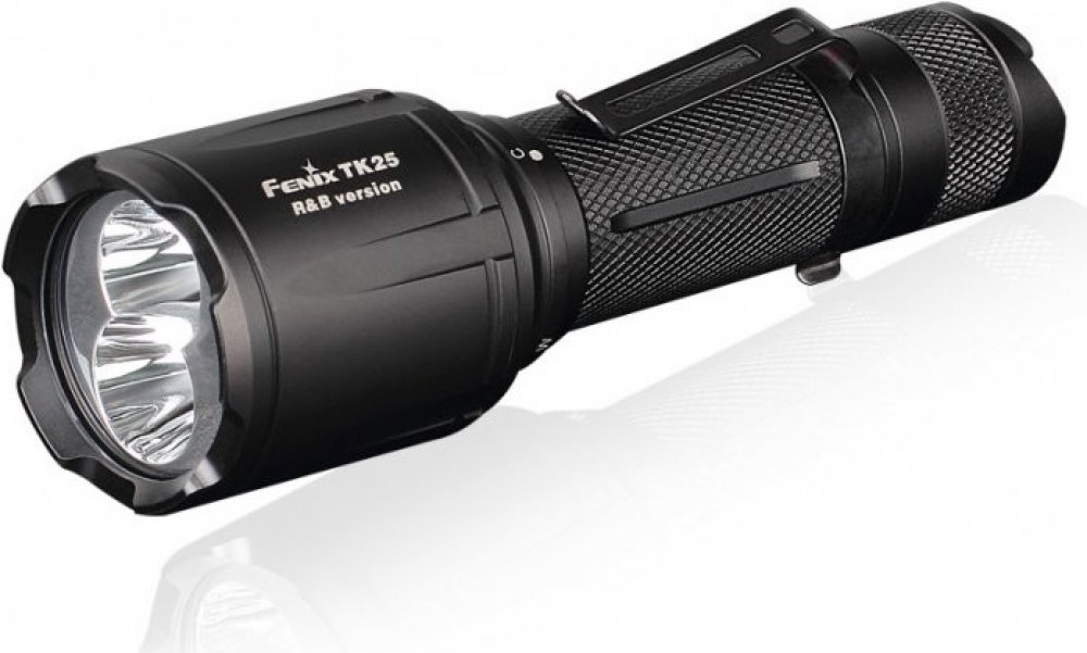 Výkon 1000 lm Dosvit 225 m Max výdrž 110 hod Napájení 2x CR123A, 1x 18650 Počet režimů 8 Barva světla Denní bílá (5500-6500 K), Červená, Modrá Vodotěsnost IP68 (ponor 2 m) Světelný zdroj Cree XP-G2, Cree XP-E2 Hmotnost 156.5 g Výkonná taktická svítilna Fenix TK25 R&B nabízí špičkový světelný tok až 1000 ANSI lumenů bílého světla a navíc dvě barevné LED (červenou a modrou). Velmi solidní a voděodolné provedení a dvouvrstvá konstrukce těla předurčuje tuto taktickou svítilnu pro drsné venkovní podmínky, pro profesionály, ozbrojené složky i myslivost. Svítilna Fenix TK25 R&B používá duální taktický spínač, který umožňuje rychlejší a spolehlivější ovládání v krizových situacích. Lze ji například snadno zapnout přímo do stroboskopického režimu. Svítilna je napájena digitálně kontrolovaným konstantním proudem pro zaručení stálého světelného výkonu i při snižování napětí v bateriích (při jejich pozvolném vybíjení). Fenix TK25 R&B disponuje celkem pěti režimy bílého světla s výdrží až 110 hodin a třemi režimy barevného světla. Přepnutí mezi módem bílého a barevného světla je velmi snadné, stačí pouze pootočit hlavu svítilny o 90°. Vzhledem k magnetickým snímačům v hlavě svítilny ji však nelze použít s magnetickou montáží na zbraň, která narušuje její správnou funkci. Všechny parametry svítilny (světelný tok, doba provozu na baterie, vodotěsnost, dosvit a nárazuvzdornost) jsou změřeny v souladu s normou ANSI/NEMA FL 1-2009. Parametry LED svítilny Fenix TK25 R&B: Jsou použity dvě bílé výkonné LED Cree XP-G2 S3 s životností 50000 hodin a dvě barevné LED Cree XP-E2 (modrá a červená). Pět režimů výkonu bílého světla: 1000 lumenů (2 hodiny) -> 300 lumenů (5,3 hodin) -> 100 lumenů (22,3 hodin) -> 15 lumenů (110 hodin) -> strobe (stroboskopické blikání). Tři režimy barevného světla: červená 150 lumenů (7,5 hodiny) -> červená 25 lumenů (40 hodin) -> modrá 60 lumenů (6,6 hodiny) Dvojitý hliníkový reflektor pro perfektní světelný kužel s dosvitem až 225 metrů (12650 cd) pro bílé světlo, 132 metrů (4350 cd) pro červené a 41 metrů (420 cd) pro modré světlo. K napájení lze použít dvě 3V lithiové baterie typu CR123A nebo jeden nabíjecí vysokokapacitní Li-ion akumulátor 18650. Časy výdrže jsou měřeny s nabíjecím Li-ion akumulátorem typu 18650 s kapacitou 3500 mAh. Elektronika s digitální konstantní regulací výkonu a ochranou proti opačnému vložení baterií. Systém dvou pružin - vysoká odolnost svítilny při použití na zbrani. Inteligentní ochrana proti přehřátí, provoz v maximálním režimu je omezen pouze teplotou svítilny, nikoliv časově. Rozměry 14,26 cm (délka) x 4 cm (průměr hlavy) x 2,5 cm (průměr těla). Váha 156,5 gramů (bez baterií). Vyrobeno z leteckého tvrzeného hliníku. Nárazuvzdorná pádům z výšky 1 metr. Lichoběžníkové závity vysoce odolné vůči opotřebení. Svítilna má paměť a zapne se vždy v posledním nastaveném režimu (neplatí pro stroboskop a barevné režimy). Odolný těžce poškrábatelný povrch - Type III hard anodized. Vodotěsná a prachotěsná dle standardu IP68 (testováno pod vodou v hloubce 2 metry). Tvrzená ultra čistá skleněná čočka s antireflexním povrchem. Duální taktický vypínač na konci svítilny (funkce okamžitého zapnutí/vypnutí - momentary on/off). Pevný klip pro bezpečné a jednoduché nošení svítilny (odstranitelný). Svítilna díky svému designu neprokluzuje v ruce a neotáčí se při položení. Ke svítilně je přiložena šňůrka na zápěstí, pouzdro na opasek a náhradní o-kroužky. Baterie nejsou součástí balení. Jako volitelné příslušenství lze dokoupit: vzdálený kabelový spínač AER-03, červený filtr AOF-L, zelený filtr AOF-L, modrý filtr AOF-L, bílý difuzér AOD-M. Se svítilnou je kompatibilní i následující příslušenství: držák na kolo, držák na kolo Fenix, montáž na zbraňovou lištu, stranová montáž, montáž na hlaveň, magnetická montáž na hlaveň, montáž svítilny na optiku, kovová montáž na optiku. Ovládání svítilny Fenix TK25 R&B Pro zapnutí zmáčknete větší tlačítko umístěné na konci svítilny, pro okamžitou aktivaci tlačítko namáčkněte. Stiskem vedlejšího přepínacího tlačítka můžete kdykoliv během provozu přepínat mezi režimy výkonu. Pro přepnutí do zábleskového režimu při zapnuté svítilně přidržte přepínací tlačítko zhruba 1 vteřinu. Pro zapnutí svítilny přímo do stroboskopického režimu stiskněte a držte přepínací tlačítko. Mezi režimy bílého a barevného světla se přepíná pootočením hlavy svítilny o 90°. Barevné světlo se vždy spustí v režimu červená 150 lumenů. Mezi barevnými režimy lze opět přepínat druhým menším tlačítkem. Inteligentní ochrana proti přehřátí - pokud vzroste teplota svítilny nad 65°C, tak začne automaticky snižovat výkon v pozvolných krocích o 5 % každých 30 vteřin, dokud se její teplota neustálí. Jakmile teplota svítilny klesne pod 65°C, tak se výkon opět automaticky zvýší na původní úroveň. Provoz na nejvyšší režim výkonu tak není omezen časově, ale pouze teplotou. Upozornění Používejte pouze kvalitní 3V CR123A baterie a 18650 li-ion akumulátory, aby nedošlo k poškození svítilny například z důvodu úniku látek z baterie. Vkládejte baterie kladným pólem směrem k hlavě svítilny. Pokud se ochranné gumové kroužky po delší době používání jeví poškozené, vyměňte je. Kroužky je třeba také promazávat, aby nedocházelo k erozi gumy. Dodržováním těchto pravidel bude svítilna správně chráněna proti vodě. Pokud svítilna bliká, nepřepíná na vyšší režimy výkonu, či se nerozsvítí, může to být jed