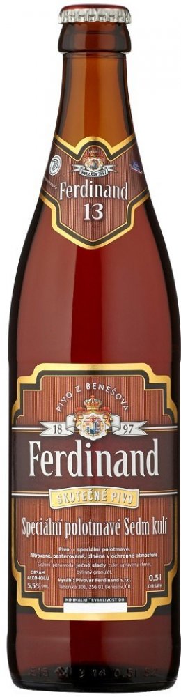 Ferdinand Sedm Kulí special polotmavý 13° 0,5l sklo / 5,5% Polotmavé pivo s příchutí bylin a unikátní hořkosladkou chutí. Obsah alkoholu : 5,5% obj.