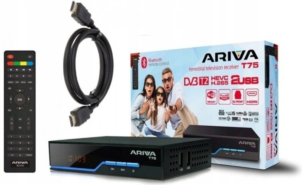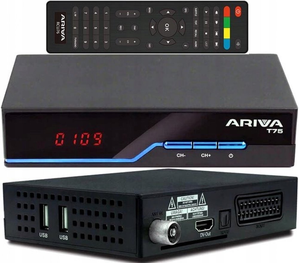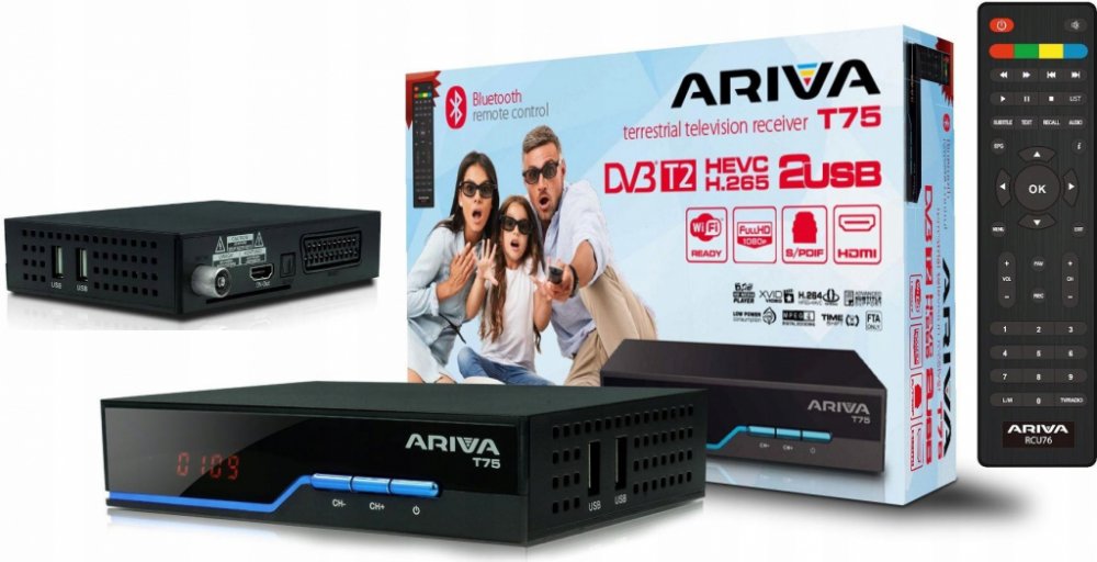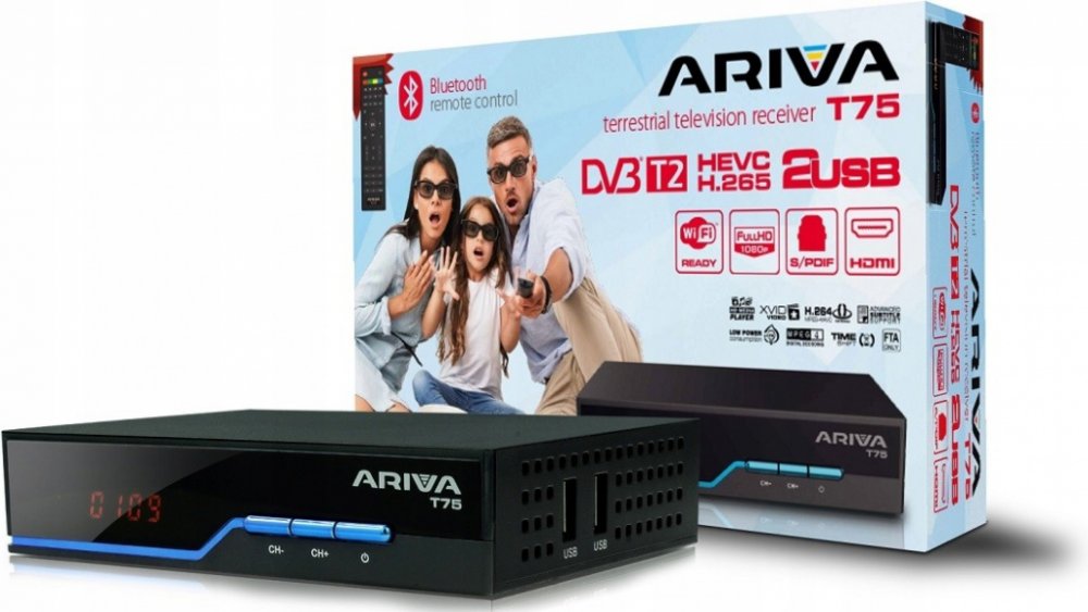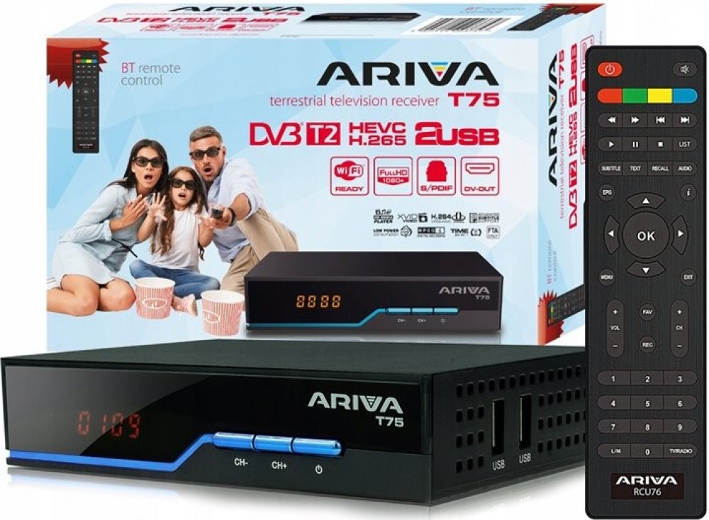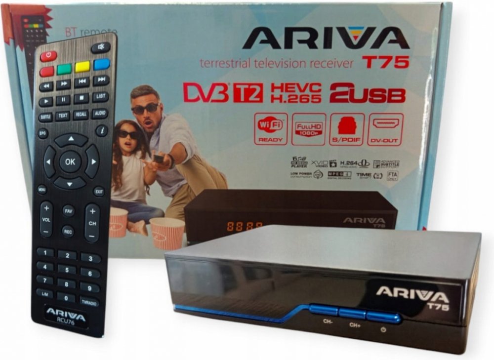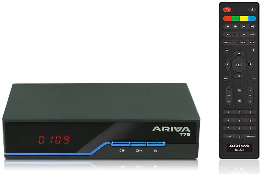 - Dekodér Ferguson Ariva T75 DVB - T2/HEVC/H.265 plně kompatibilní s výstupem MPEG-2 ve vysokém a standardním rozlišení a plně kompatibilní s MPEG-1/2 Layer I/II/III, MPEG-2/4 LC-AAC, MPEG-4 HE-AAC@Level 4