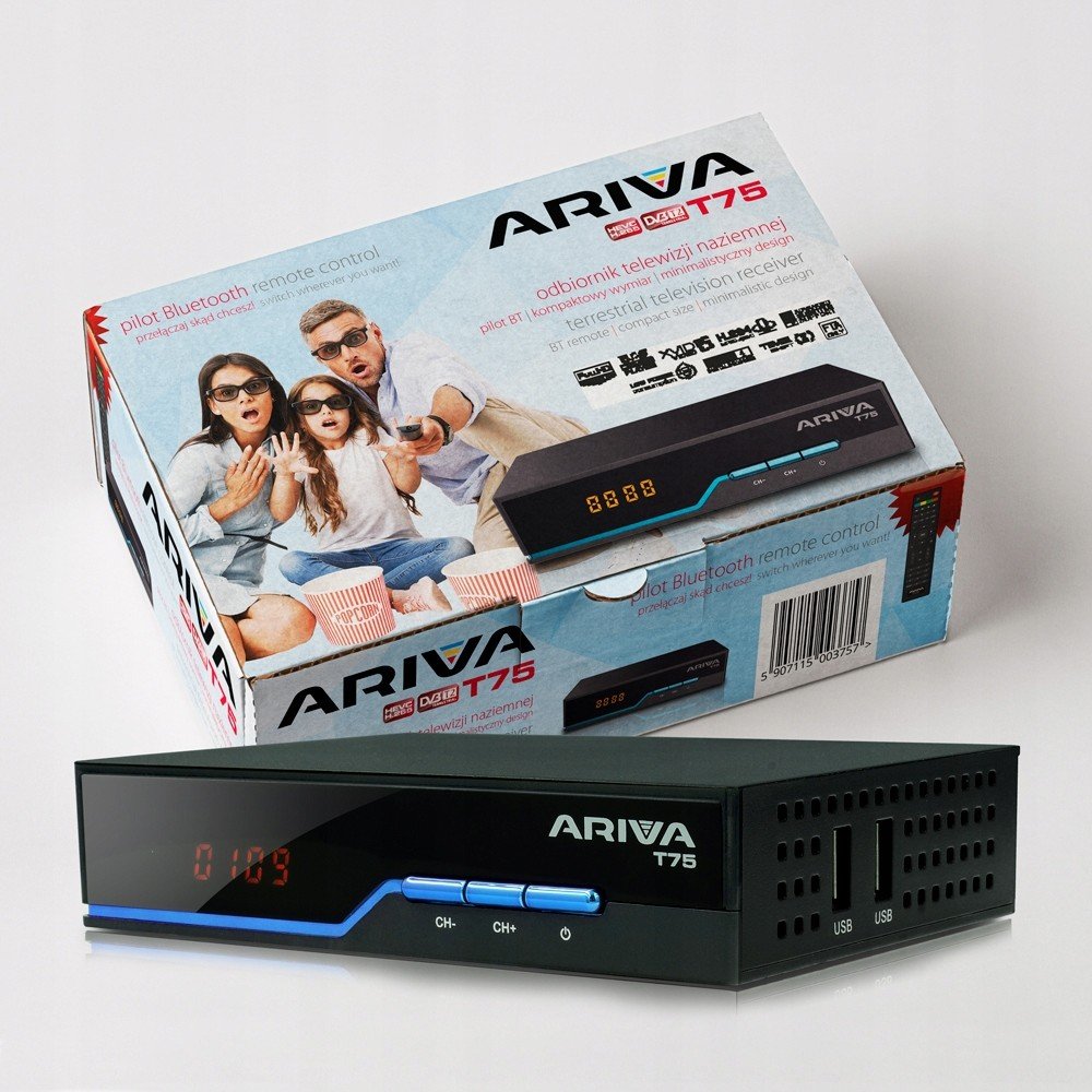 Dekodér Ferguson Ariva T75 DVB - T2/HEVC/H.265 je univerzální přijímač pro pozemní televizní vysílání ve standardu DVB - T2. Dekodér Ferguson Ariva T75 DVB - T/T2/HEVC/H.265 podporuje nejnovější standardy kódování videa H.265 a zvuku Dolby Digital v souladu s nejnovějšími evropskými normami pro pozemní televizní vysílání.